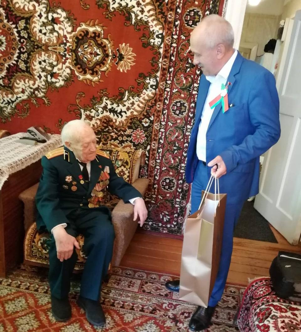 В преддверии Дня Победы поздравления прозвучали для воевавшего на фронтах Великой Отечественной войны Аркадия Андреевича Савчука, ковавших Победу в тылу Николая Федоровича Шастеля и Владимира Александровича Пятлина, переживших блокаду Ленинграда Валентины Евгеньевны Лисовской и Бориса Михайловича Завалова. Благодаря в том числе этим почтенным людям мы с вами сегодня живем в мирной и независимой стране, пользуемся благами цивилизации, ведь кто-то из них прогонял врага с белорусской земли, кто-то, работая в тылу, обеспечивал армию оружием и продовольствием, и все они, пережив годы военного лихолетья, отстраивали из руин страну, в которой мы живем сейчас. Гости благодарили ветеранов за это и желали им, прежде всего, самого важного — здоровья.