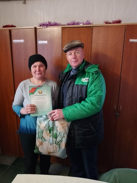 При посещении животноводческих ферм профсоюзные лидеры встретились с работниками, поблагодарили их за труд, поздравили с наступающим Новым годом и Рождеством, а лучших работников отметили благодарностями и ценными подарками. Среди награждаемых: ветеринарный врач Елена Кременевская, помощник бригадира в животноводстве Светлана Шастало, операторы машинного доения Илона Лозовская, Дарья Качан, Светлана Кощун, животновод Ирина Кетко.