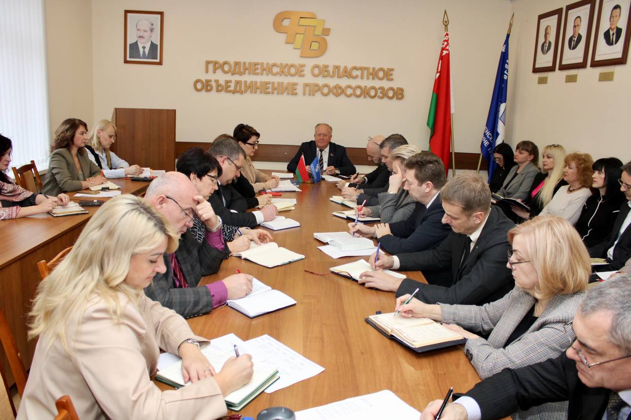 Плановое совещание с председателями областных организаций отраслевых профсоюзов провел председатель Гродненского областного объединения профсоюзов Виктор Лискович.