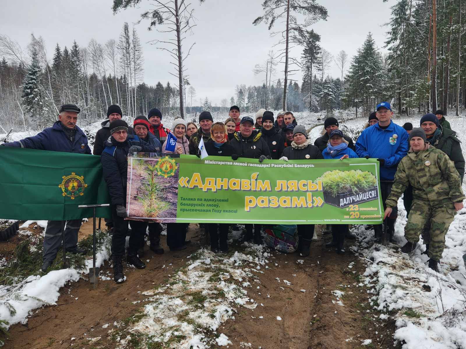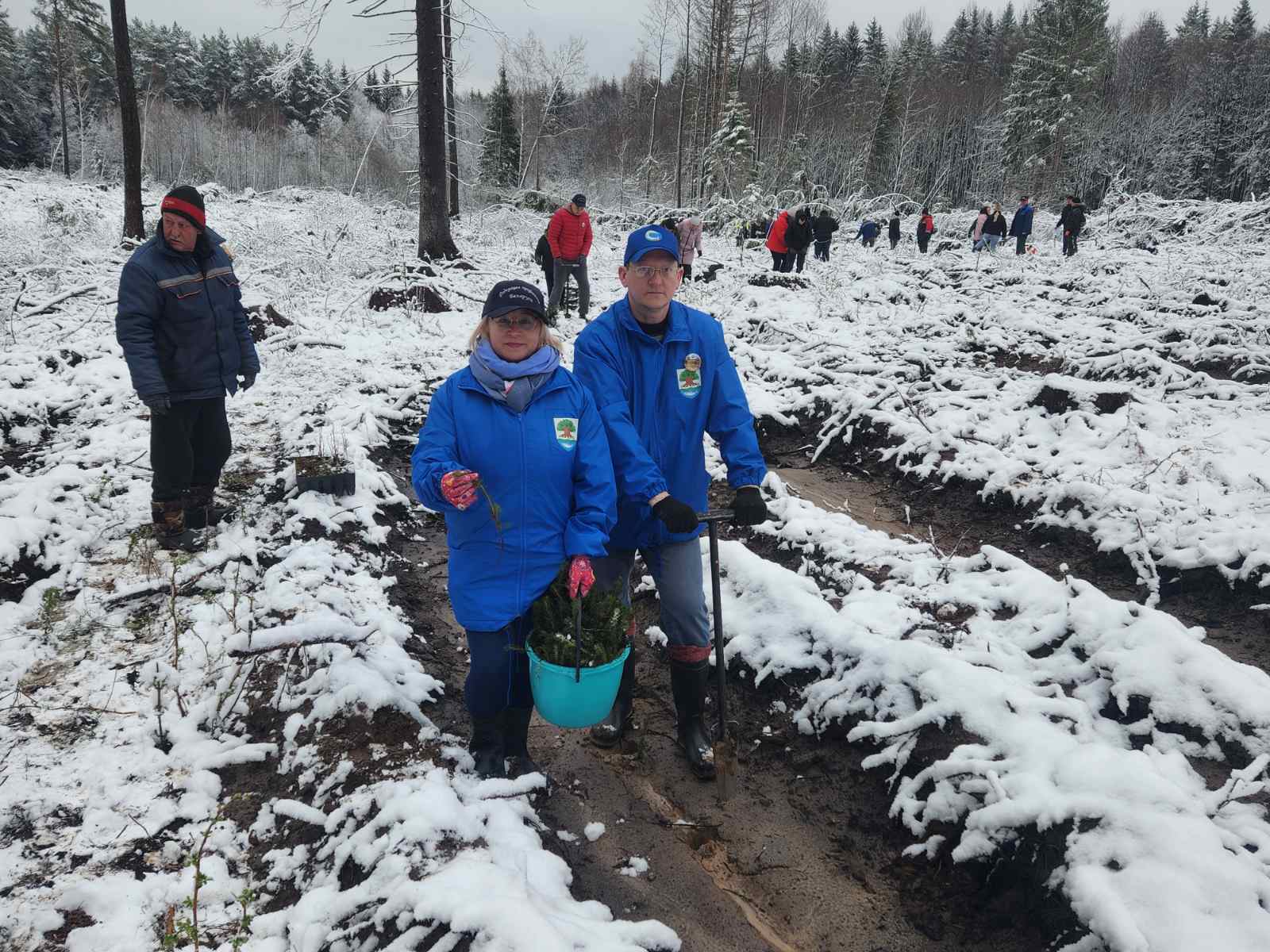 Самые активные члены первичных профсоюзных организаций сферы образования, агропромышленного комплекса, лесного хозяйства и представители райобъединения, несмотря на выпавший ночью снег, отправились в Котеновичи, где под посадку молодняка подготовило территорию Ворнянское лесничество.