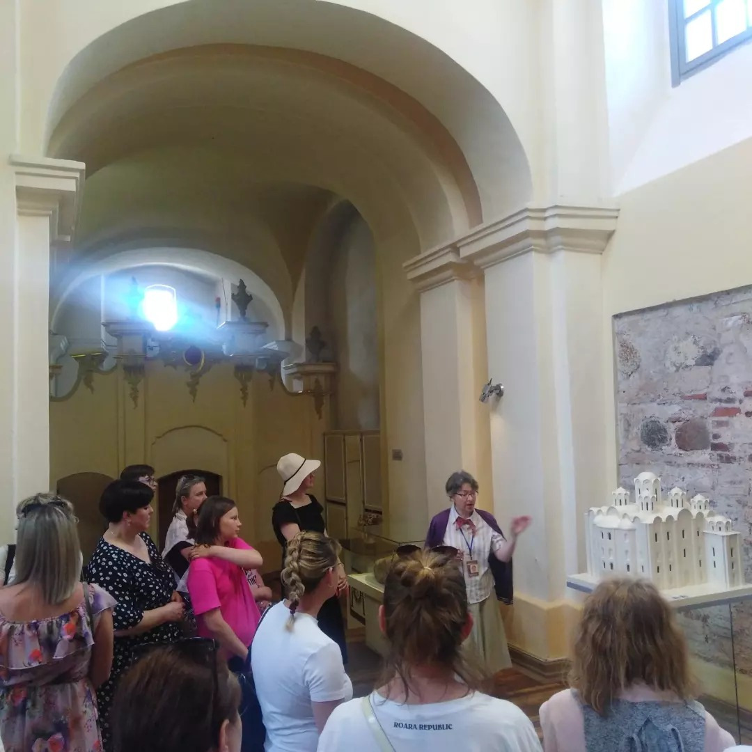 Во время обзорной экскурсии по Витебску побывали в исторической части города с сохранившейся и восстановленной застройкой ХVIII-XIX вв. Увидели старейший храм Витебска — восстановленную в византийском стиле церковь Благовещения.