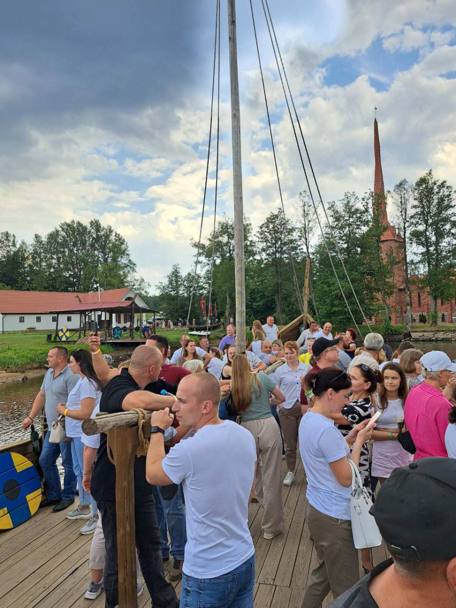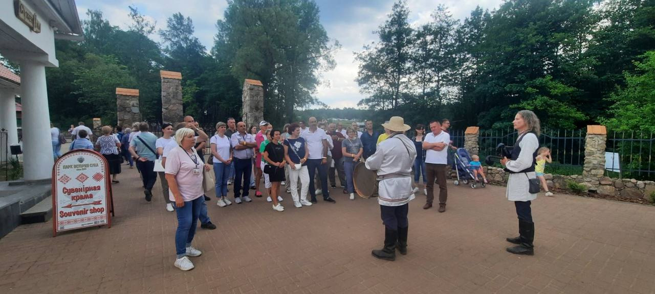 Завершилась поездка знакомством с парком-музеем интерактивной истории «Сула», где профсоюзные активисты окунулись в XV–XVII век - эпоху шляхетства, покатались на драккаре и прошли старославянский обряд очищения огнем.