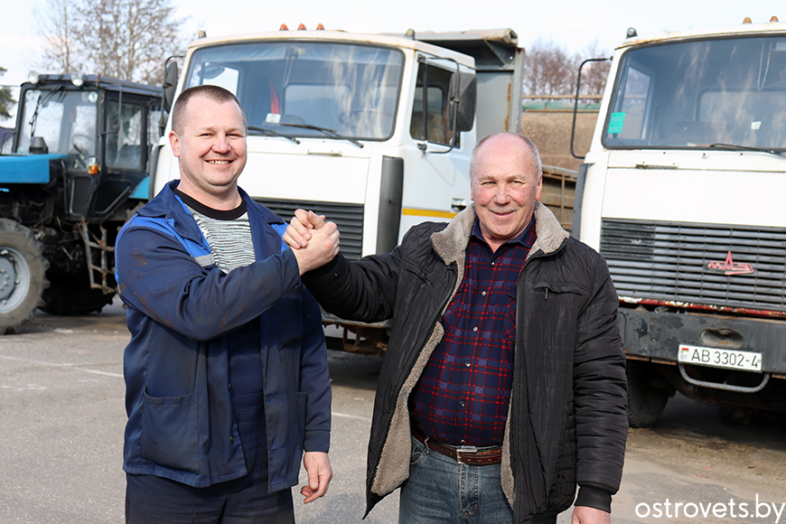 калег. Вадзіцель Часлаў Іванавіч ў сельгастэхніцы працуе пад 40 гадоў, сюды ж