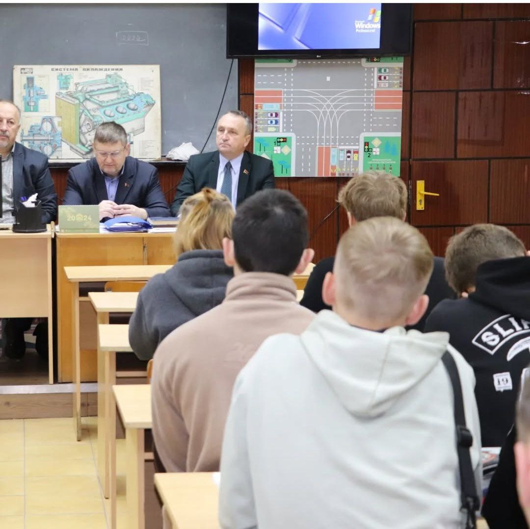 12 декабря в УО "Берестовицкий государственный колледж" состоялась встреча главного правового инспектора труда Гродненского обкома профсоюза работников АПК Шишко А.И. и председателя Берестовицкого райкома профсоюза работников АПК Онищика В.С. с учащимися третьего курса.