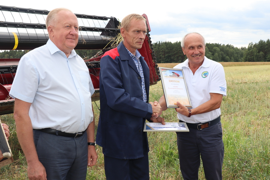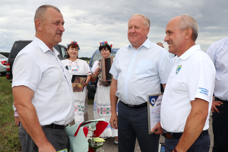 Немедля с трудовой победой земледельца прямиком в поле, так сказать, не отвлекая от важного дела, поздравили член Совета Республики Национального собрания Республики Беларусь, председатель Гродненского областного объединения профсоюзов Виктор Лискович, председатель Гродненской профсоюзной организации Белорусского профсоюза работников АПК Ромуальд Юровский, представители ОАО «Гомсельмаш», районной власти и районной организации профсоюза работников АПК.
