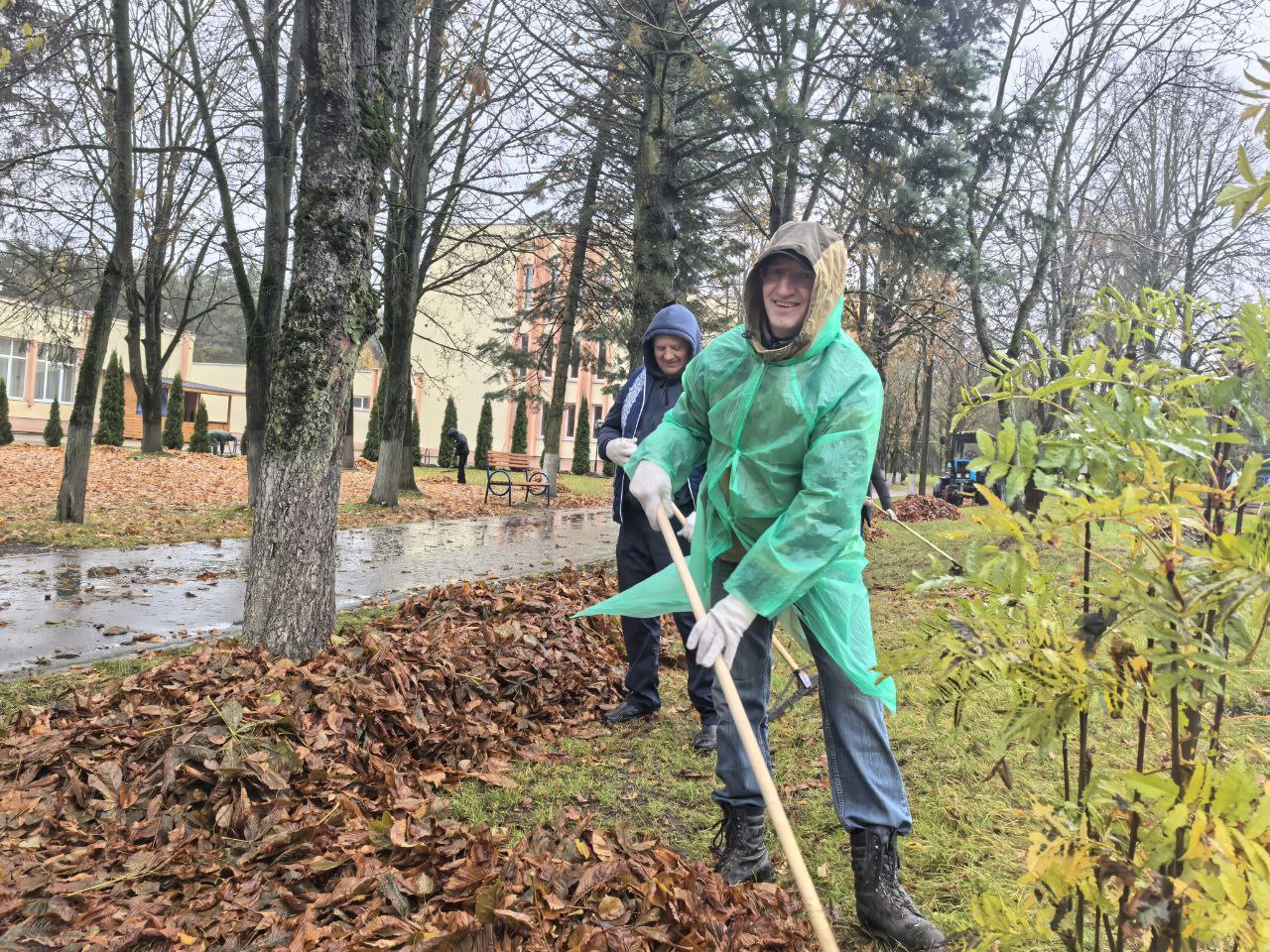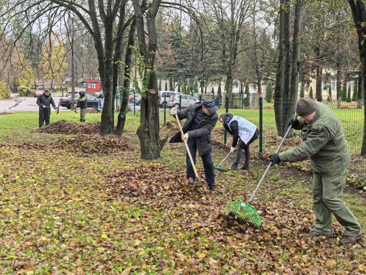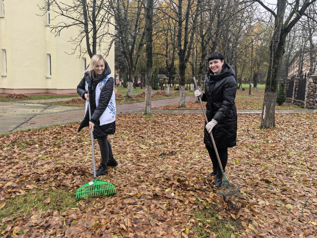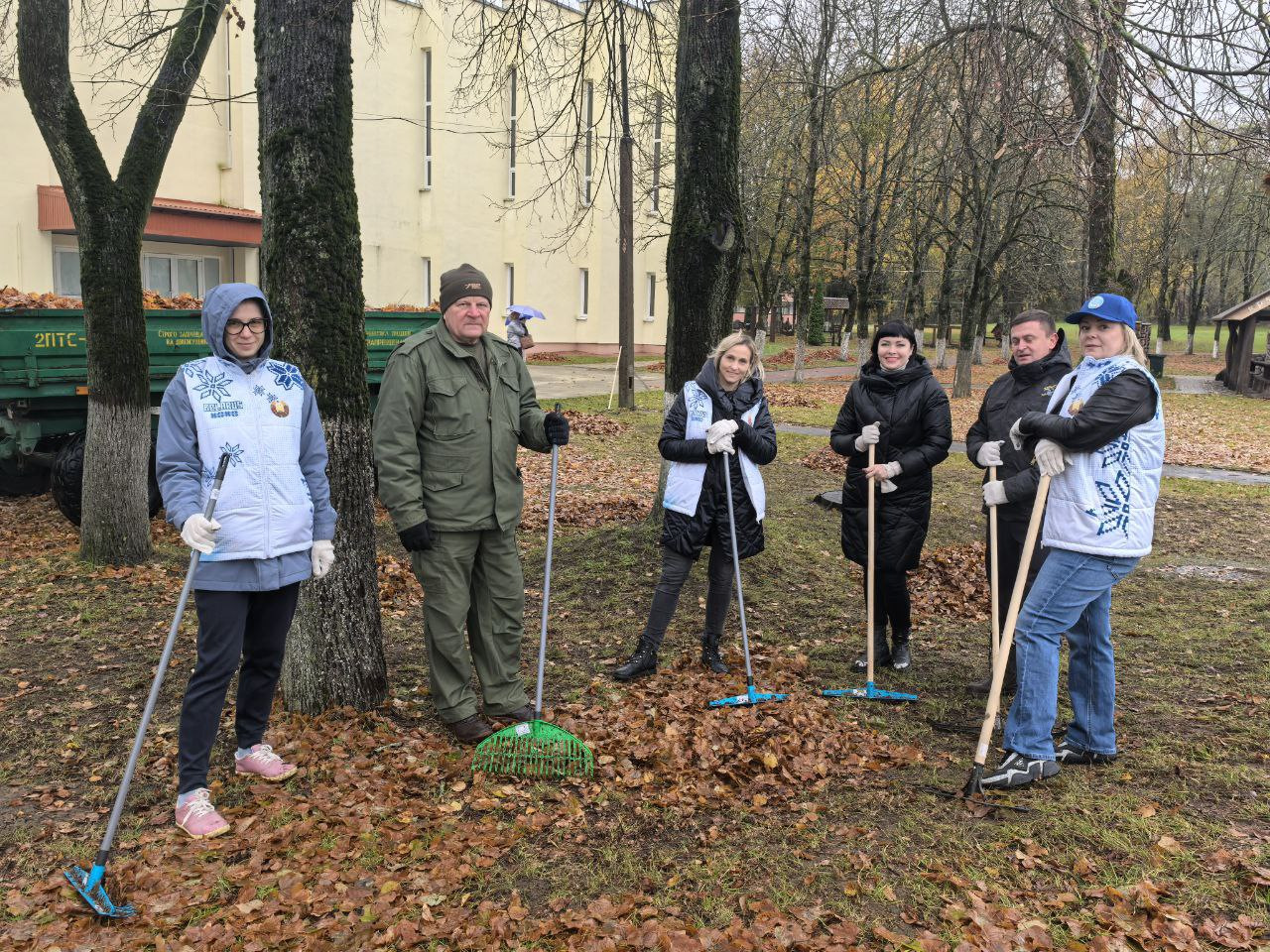 Во главе с председателем Михаилом Михайловичем Ситько представители Гродненской областной профсоюзной организации работников АПК активно включились в уборку территории.