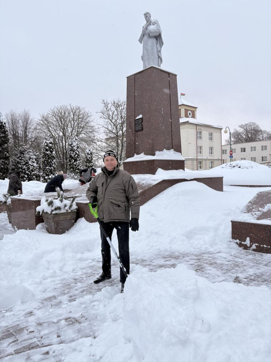 Председатель Берестовицкой районной профсоюзной организации работников АПК Владимир Онищик лично вышел на расчистку снега с центральных улиц города, чтобы помочь коммунальным службам справиться с последствиями циклона «Улли».
