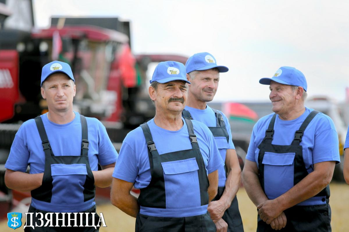 На колосящемся поле – техника, которая будет задействована в уборочной кампании, а также люди, которым предстоит трудиться от зари до зари, чтобы вовремя убрать зерно с полей. По старинному обычаю, именно женщины, как берегини белорусской земли, первыми вышли в поле. С серпами в руках они срезали первый сноп нового урожая. А традиционный символ щедрости земли – караваи – в этот день были вручены Алексею Садовскому, Игорю Аверко и Ольге Потапчик.