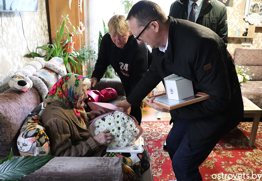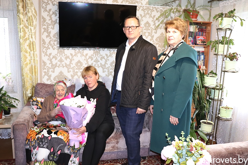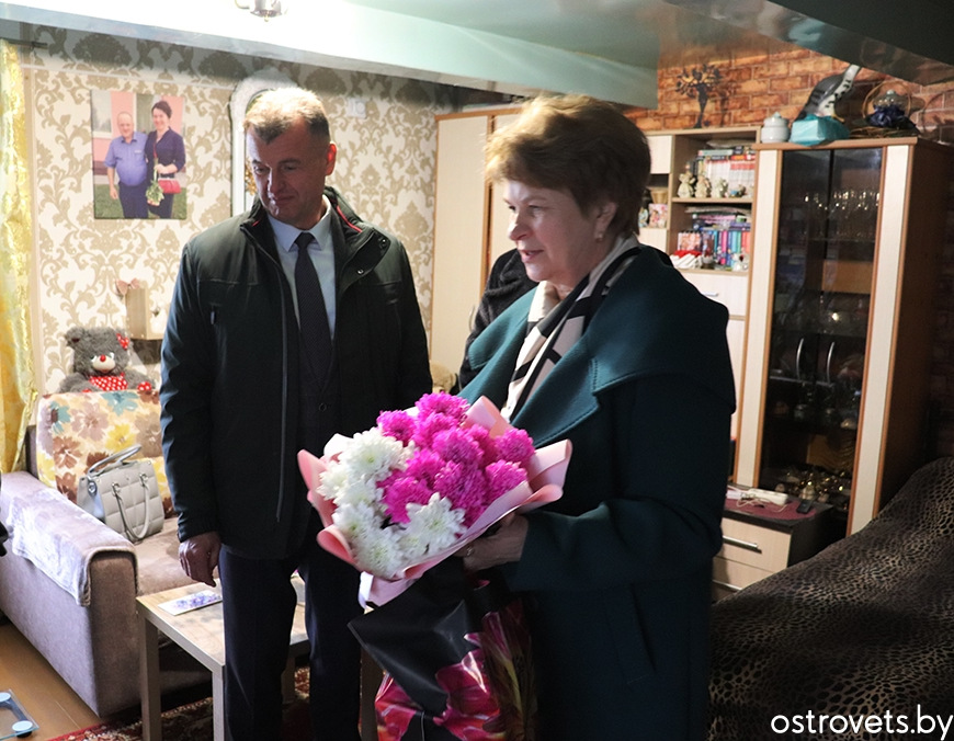 Са значнай датай з дня нараджэння юбіляршу павіншавалі старшыня райсавета дэпутатаў і раённага аддзялення партыі “Белая Русь” Генадзь Бычко, намеснік старшыні райвыканкама і лідар раённай арганізацыі РГА “Белая Русь” Вольга Баяровіч, старшыня райкама прафсаюза работнікаў аграпрамысловага комплексу Юрый Адула, лідар прафсаюзнай пярвічкі КСУП “Варняны” Таццяна Лісоўская і намеснік старшыні раённага савета ветэранаў Віктар Ярмак. Да пажаданняў здароўя і добрага самаадчування госці дадалі віншавальныя адрасы, кветкі і падарункі.