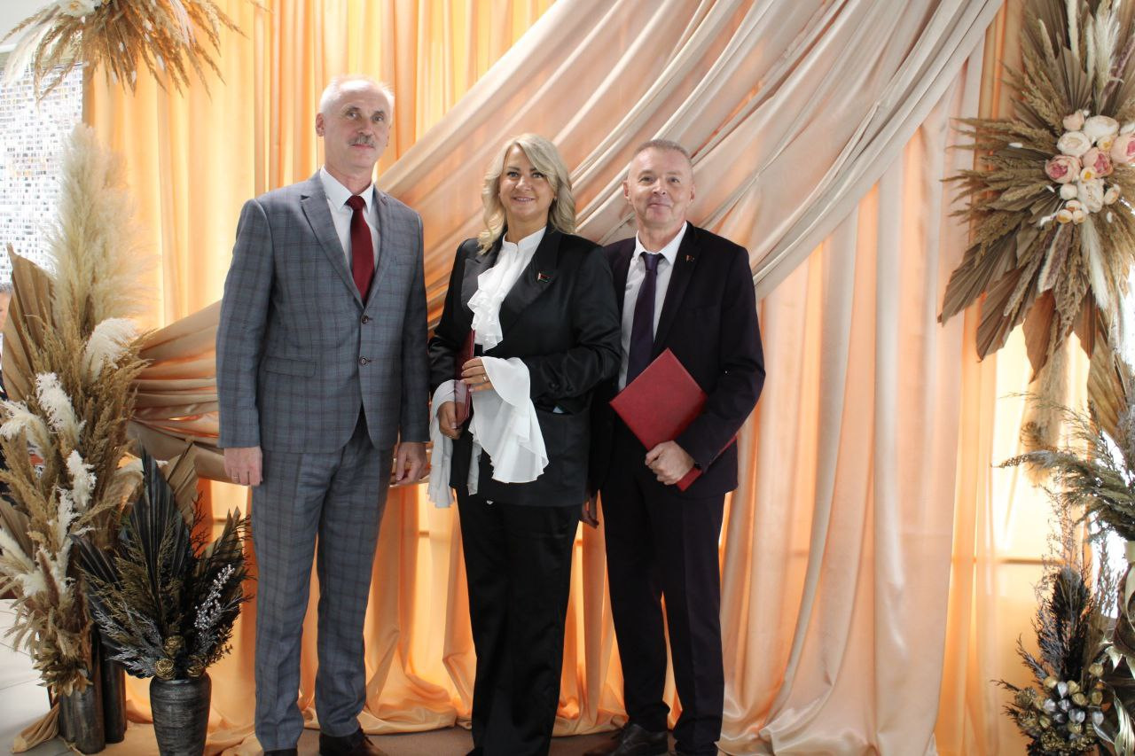 В этом году Слонимский государственный колледж празднует 85-летие. Красивую дату коллектив учреждения образования вместе с многочисленными гостями отмечал 10 октября торжественным мероприятием «Время выбрало нас!» в районном центре культуры. История длиной в 85 лет — это не просто дата в календаре. Это тысячи выпускников, сотни специалистов и целые династии, чья судьба неразрывно связана с колледжем. Поздравления педагогам и учащимся колледжа адресовала заместитель председателя Слонимского районного исполнительного комитета Тереса Вацлавовна Юшкевич. В своей речи она отметила, что на протяжении 85 лет молодежь обретает в Слонимском государственном колледже крепкие знания, навыки и уверенность в своих силах, здесь воспитываются не только специалисты, но и ответственные граждане, которые, успешно работая, вносят свой вклад в развитие родного края. Тереса Вацлавовна открыла церемонию чествования замечательных представителей коллектива учреждения образования, вручив награды лучшим из лучших. Отметить вместе со слонимчанами 85-летие колледжа приехал начальник отдела профессионального образования главного управления образования Гродненского облисполкома Андрей Викторович Батуро. В поздравительной речи он заслуженно подчеркнул высокий уровень образования, который предлагает учреждение образования, профессионализм педагогов и востребованность специальностей СГК. Отметил, что по итогам работы за прошлый год Слонимский государственный колледж признан лучшим в области. Очень теплым было обращение к коллегам и гостям директора учреждения образования «Слонимский государственный колледж» Леокадии Брониславовны Юревич. Вместе коллективу действительно удалось сделать очень много для развития колледжа, повышения качества образования, укрепления материальной базы. Добрые слова высказали представители учреждений профобразования области, поздравил коллег директор Слонимского государственного медицинского колледжа Андрей Иванович Грипич. Слонимский государственный колледж является кузницей кадров для сельскохозяйственных организаций и предприятий Слонимского района, а потому среди почетных гостей, которые пришли высказать свои поздравления, были первый заместитель председателя Слонимского райисполкома, начальник управления сельского хозяйства и продовольствия Виталий Марьянович Юровский, представители хозяйств Слонимщины – директор КСУП «Имени Дзержинского» Анатолий Казимирович Шейко и заместитель руководителя КСУП «Имени Суворова» Александр Павлович Жуковский, заместитель председателя Гродненского областного комитета Белорусского профсоюза работников агропромышленного комплекса Алеся Станиславовна Венско, председатель Слонимского РК Белорусского профсоюза работников агропромышленного комплекса Александр Николаевич Зинченко. На празднике особые слова благодарности адресовали педагогам-ветеранам Слонимского государственного колледжа, посвятившим учреждению десятки лет своей профессиональной деятельности. Церемонию награждения педагогов, мастеров производственного обучения СГК продолжили начальник управления образования Слонимского райисполкома, председатель Слонимской районной организации Республиканского общественного объединения «Белая Русь» Светлана Викторовна Вал