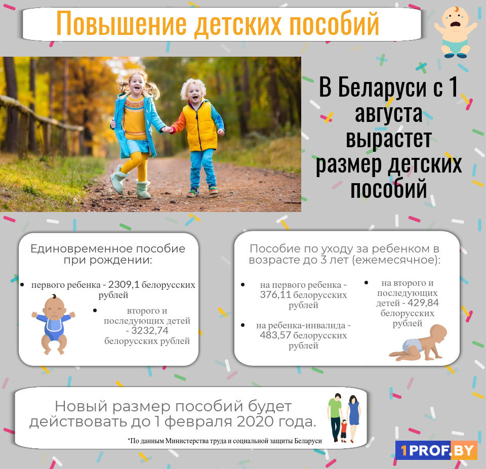 С 1 августа в нашей стране повышаются социальные и трудовые пенсии, а также разного рода пособия. Это связано с увеличением зарплат и ростом размера бюджета прожиточного минимума (БМП), пишет БЕЛТА БПМ теперь будет составлять 230 рубль 91 копейку. Это на 3,1% выше норматива, действовавшего с 1 мая по 31 июля. Новый размер БПМ утвержден до конца октября. Его увеличение в первую очередь связано с ростом цен на продовольствие. По причине увеличения БПМ растут и социальные выплаты. О том, как изменятся детские пособия, смотрите в инфографике 1prof.by.