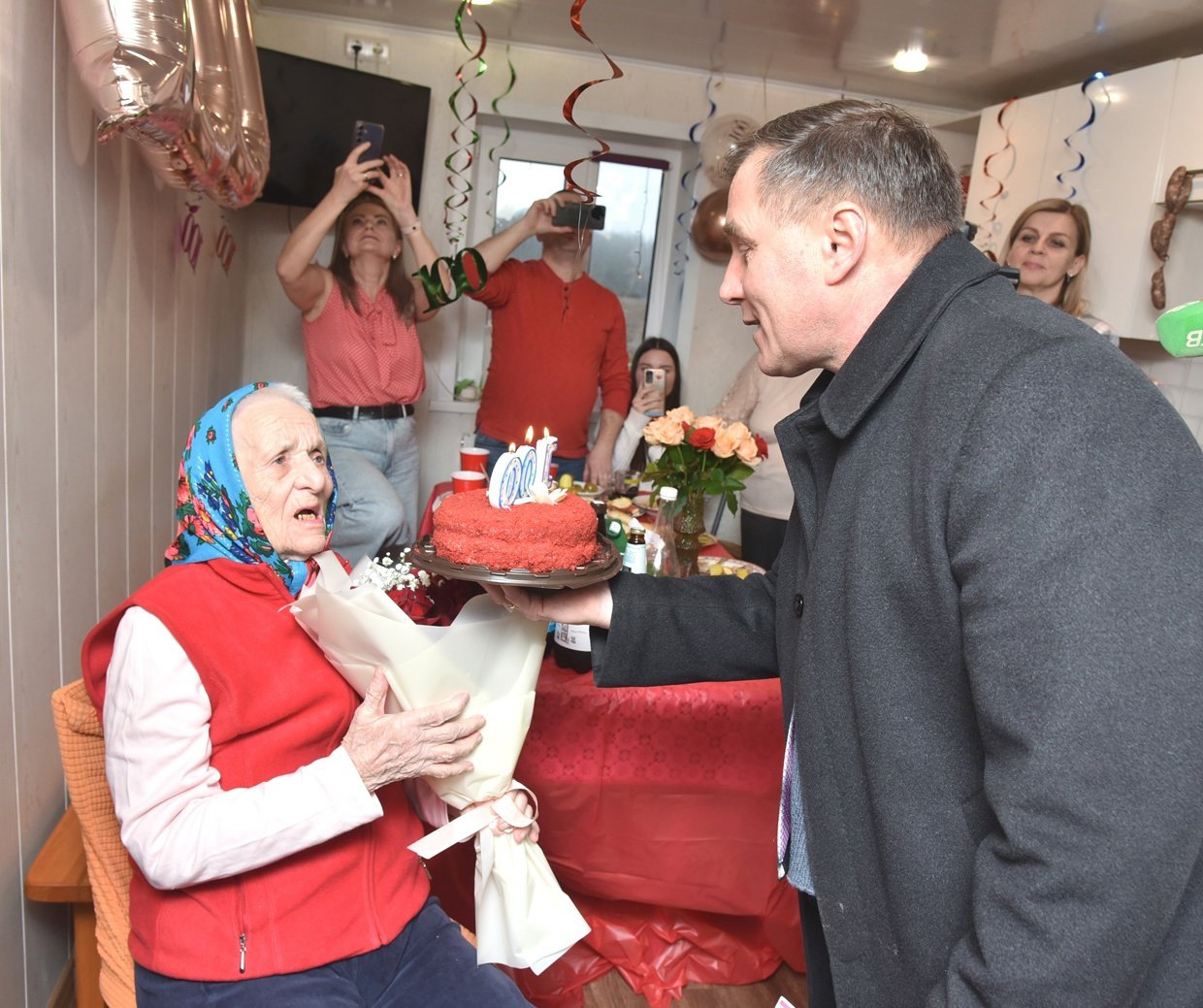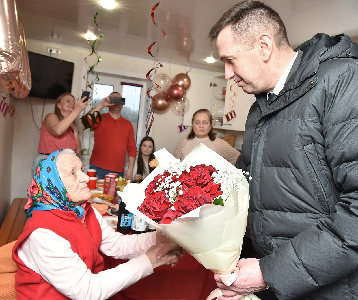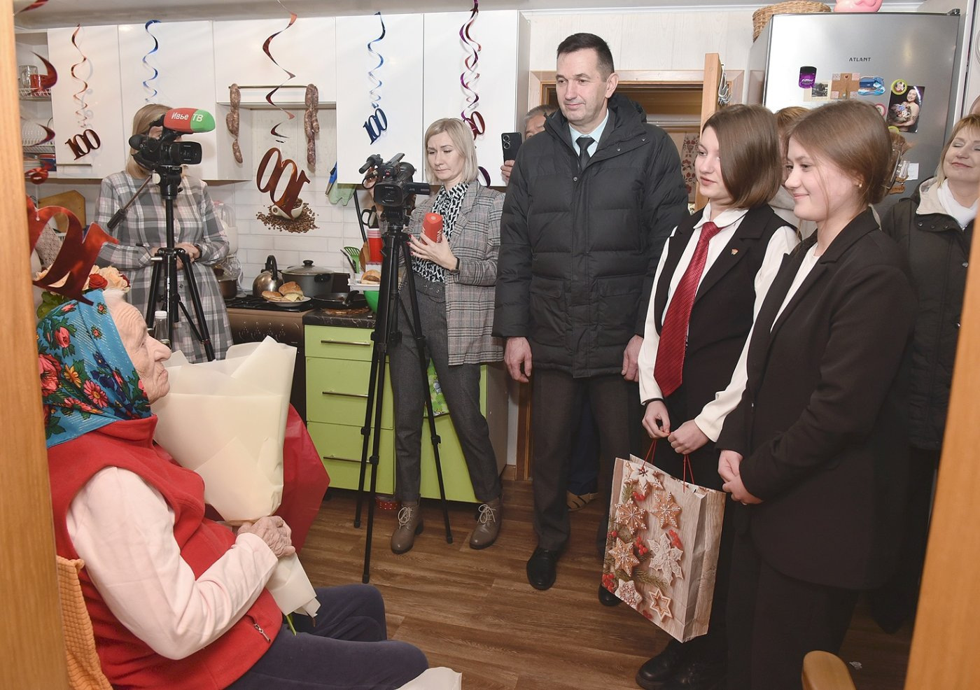 Поздравить именинницу с вековым юбилеем собрались не только все члены ее большой и дружной семьи, но и представители власти и общественных объединений района: председатель Ивьевского райисполкома Игорь Генец, заместитель председателя райисполкома, председатель Ивьевской районной организации РОО "Белая Русь" Анжелика Цисар, председатель Ивьевского районного Совета депутатов Валентина Филон, председатель Эйгердовского сельсовета Эдуард Юхневич, председатель Ивьевской районной ветеранской организации Иван Жидель, председатель районной профсоюзной организации работников АПК Инесса Кулешо, директор ТЦСОН Ивьевского района Татьяна Радкевич, военный комиссар Ивьевского района Владимир Жебрик, а также члены первичной организации БРСМ Эйгердовской СШ. Татьяне Логвиновне было всего 16 лет, когда на родную землю пришли фашистские оккупанты. В 1941-м году тогда еще молодую девушку насильно вывезли в в один из концентрационных лагерей, заставив заниматься тяжелой работой. Жизнь казалась невыносимой. Пыталась бежать из одного из лагерей, но поймали немцы, соврала и представилась чужой фамилией, избежав таким образом расстрела. В это тяжелое время, там же в Германии, познакомилась с будущим мужем, родом с Ивьевщины. Страшно вспоминать войну и те ужасы, через которые пришлось пройти. После освобождения из концлагеря вернулась на Родину мужа Евгения, где долгие годы работала в колхозе "Путь коммунизма" на самых разных должностях. Вместе с мужем воспитала пятеро детей и дала им достойное образование, а это тоже своего рода подвиг. И сейчас через 100 лет жизненного пути ей по праву есть чем гордиться, ведь за круглым столом собрались дети, внуки и правнуки, отмечая вековой юбилей близкого им человека.