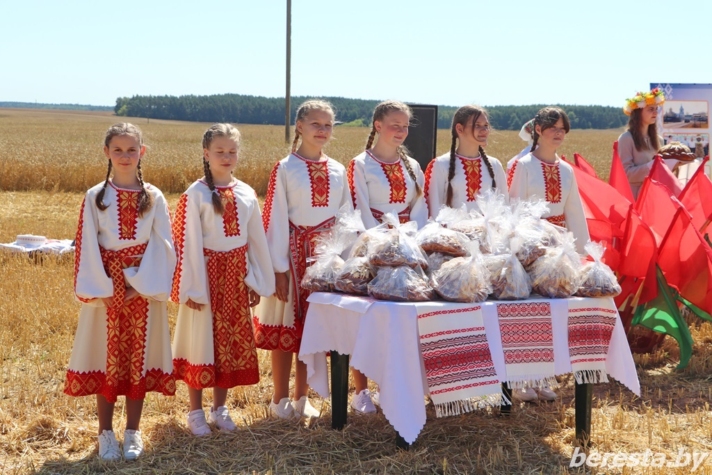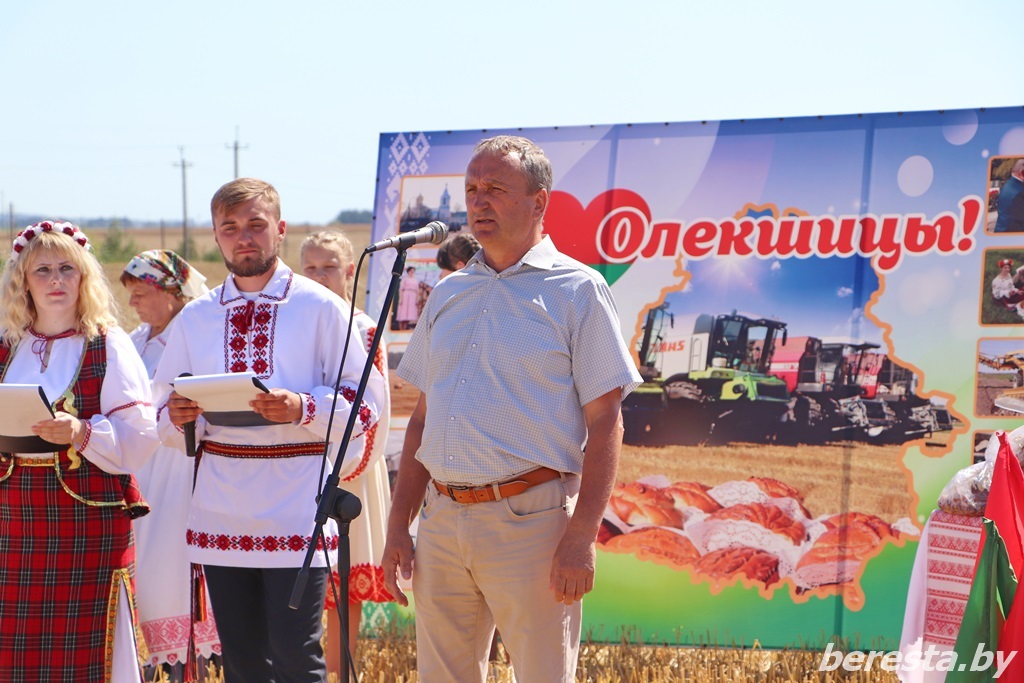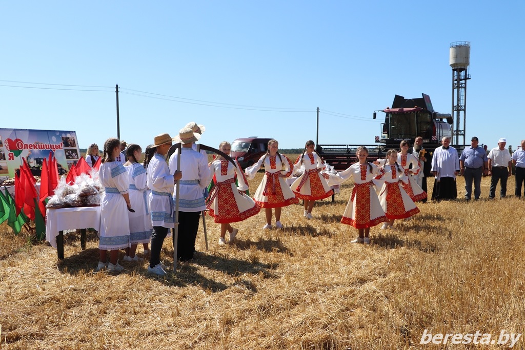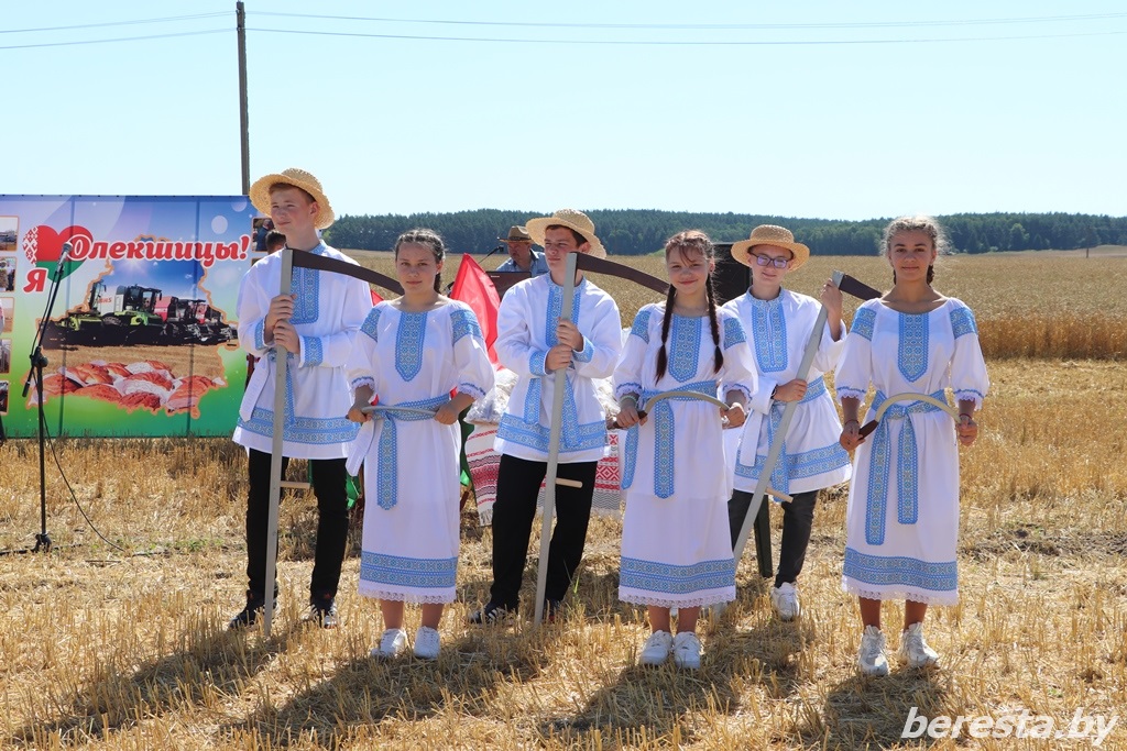 Віншаванні з пачаткам жніва, пажаданні спрыяльнага надвор’я і высокіх намалотаў прагучалі ад ганаровых гасцей свята – старшыні Бераставіцкага раённага Савета дэпутатаў Паўла Панкевіча, старшыні Алекшыцкага сельсавета Мікалая Прымачэнкі і старшыні райкама прафсаюза работнікаў АПК Уладзіміра Анішчыка, які, дарэчы, таксама напомніў аб ахове працы і заахвоціў хлебаробаў да ўдзелу ў спаборніцтве на жніве, якое праводзіць прафсаюз.