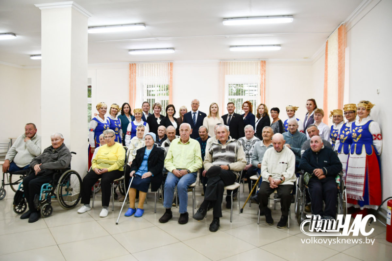 А на празднике желали крепкого здоровья, радости и благополучия проживающим в пансионате заместитель председателя Постоянной комиссии по экономике, бюджету и финансам Совета Республики, заместитель директора по развитию СООО «Конте Спа» Валентин Байко; начальник управления по труду, занятости и социальной защите Волковысского райисполкома Татьяна Янковская; председатели районных организаций: ОО «БСЖ» — Мария Полудень, профсоюза работников АПК — Валентин Заяц, профсоюза государственных и других учреждений — Валентина Мелешко, а также заместитель директора-главный инженер ОАО «ВолМет» Виктор Почебут, председатель первичной профсоюзной организации ОАО «ВолМет» Леонтина Галась, председатель профсоюзного комитета ОАО «Волковысский мясокомбинат» Оксана Данилова и другие.