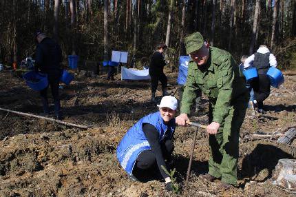 В общей сложности профсоюзные активисты помогли восстановить лесные насаждения на территории