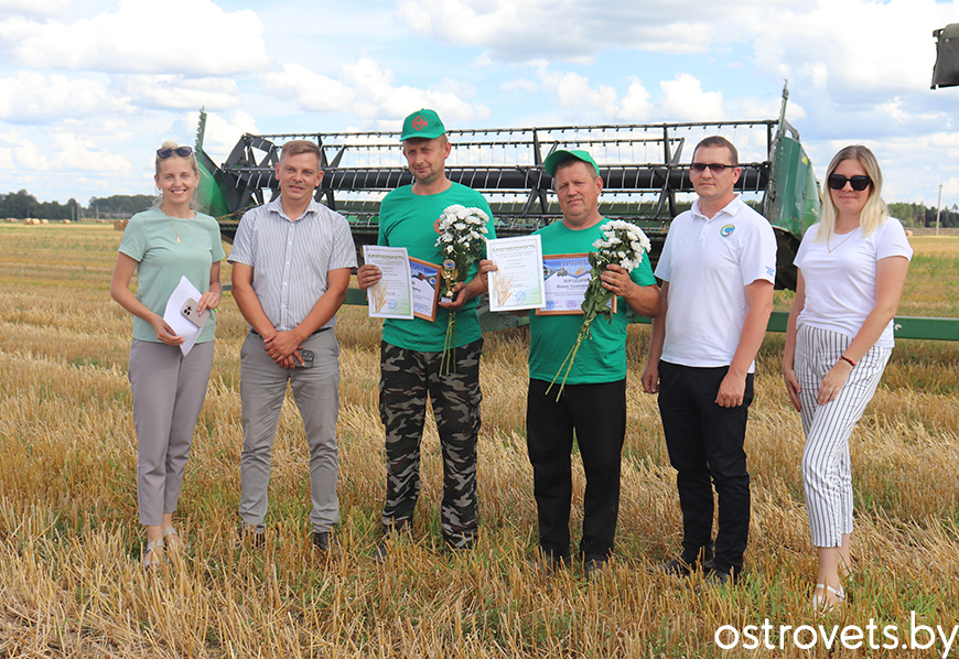 Па звестках райкама прафсаюза работнікаў АПК, на 22 ліпеня па тысячы тон намалацілі 4 экіпажы, такую ж колькасць зерня перавезлі 9 вадзіцеляў. Звыш 4-х тысяч тон дапрацавала адно звяно зернесушыльшчыкаў, звыш 2-х – тры.
