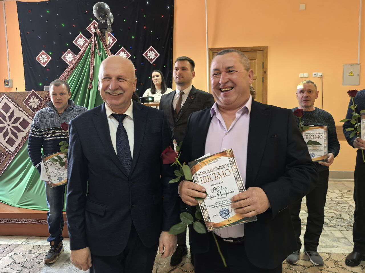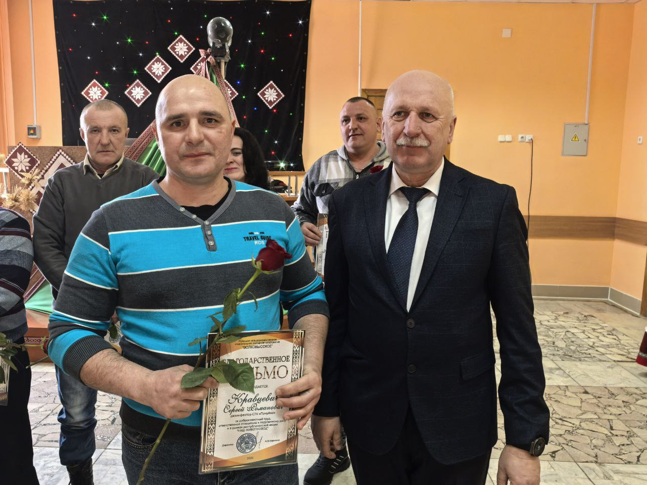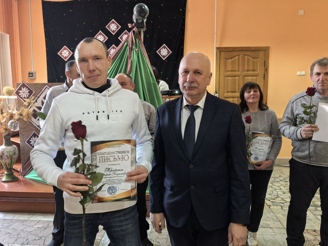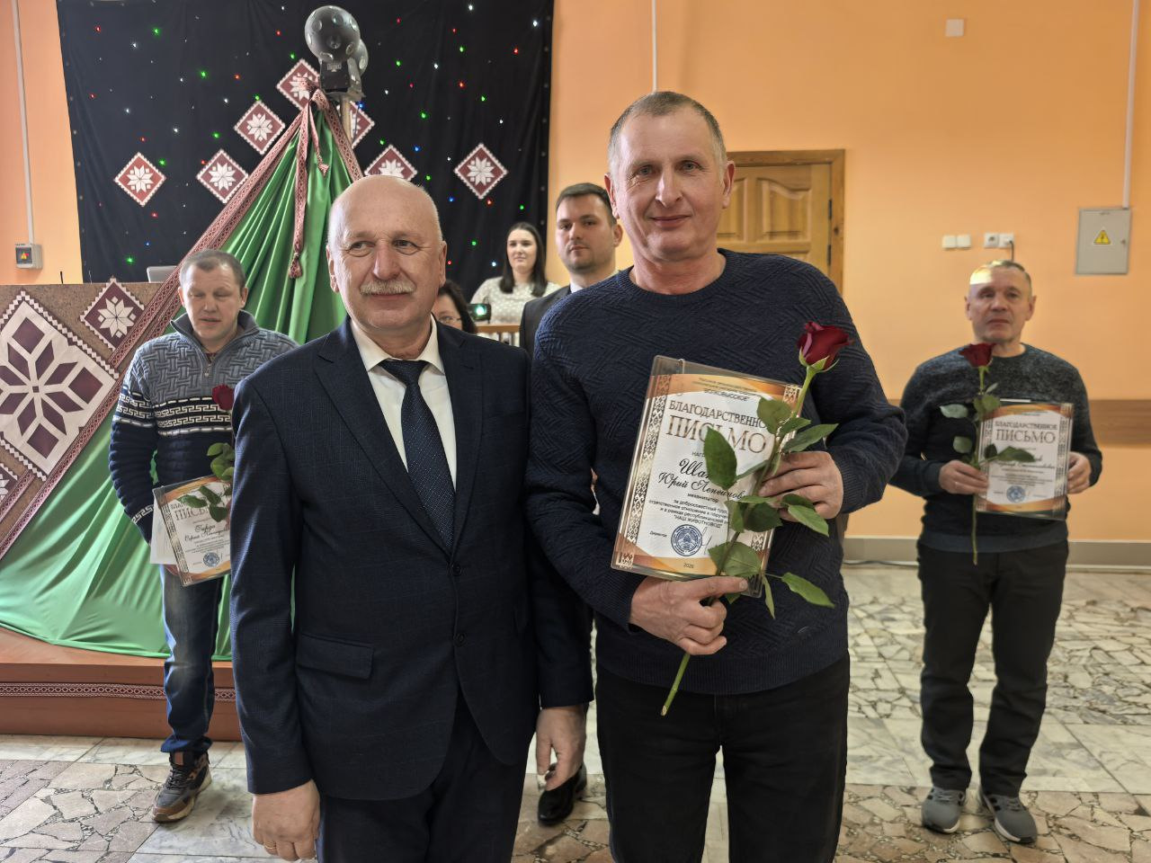 Поводом для встречи стала высокая оценка труда специалистов, которые ежедневно обеспечивают стабильность производства. В праздничной обстановке грамотами областной профсоюзной организации работников агропромышленного комплекса были отмечены пять сотрудников предприятия. Среди награждённых — ветеринарный фельдшер МТК «Львовка» Людмила Македон, управляющий фермой «Залучаны» Александр Кузьмицкий, заместитель управляющего фермой «Мештуны» Вероника Гресик, инженер СТК «Почуйки» Дмитрий Бычек, а также зоотехник-селекционер Марина Дулуб.