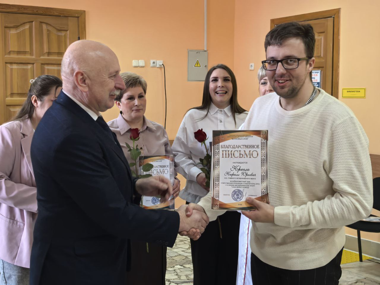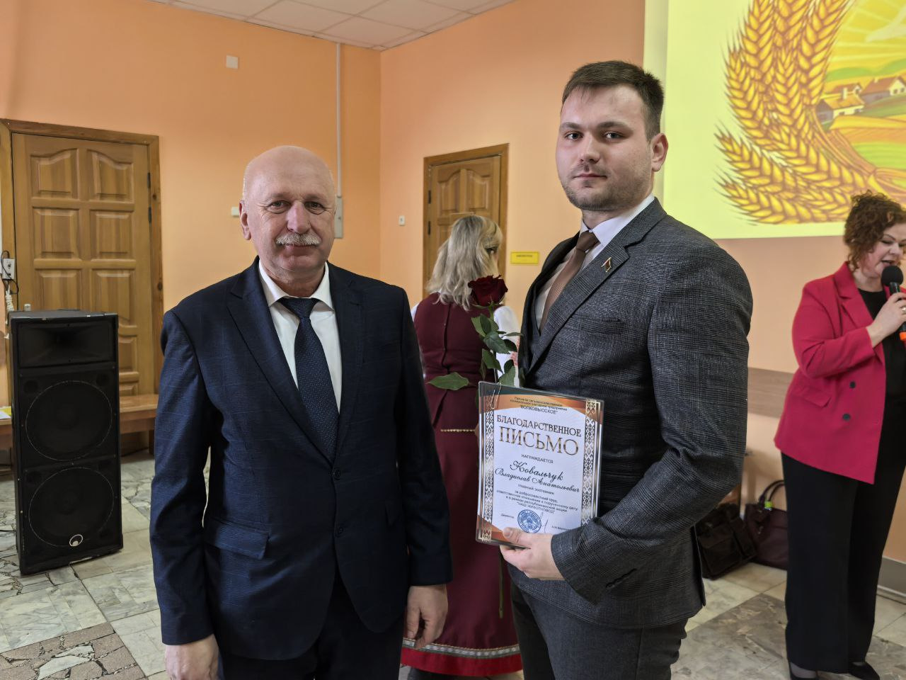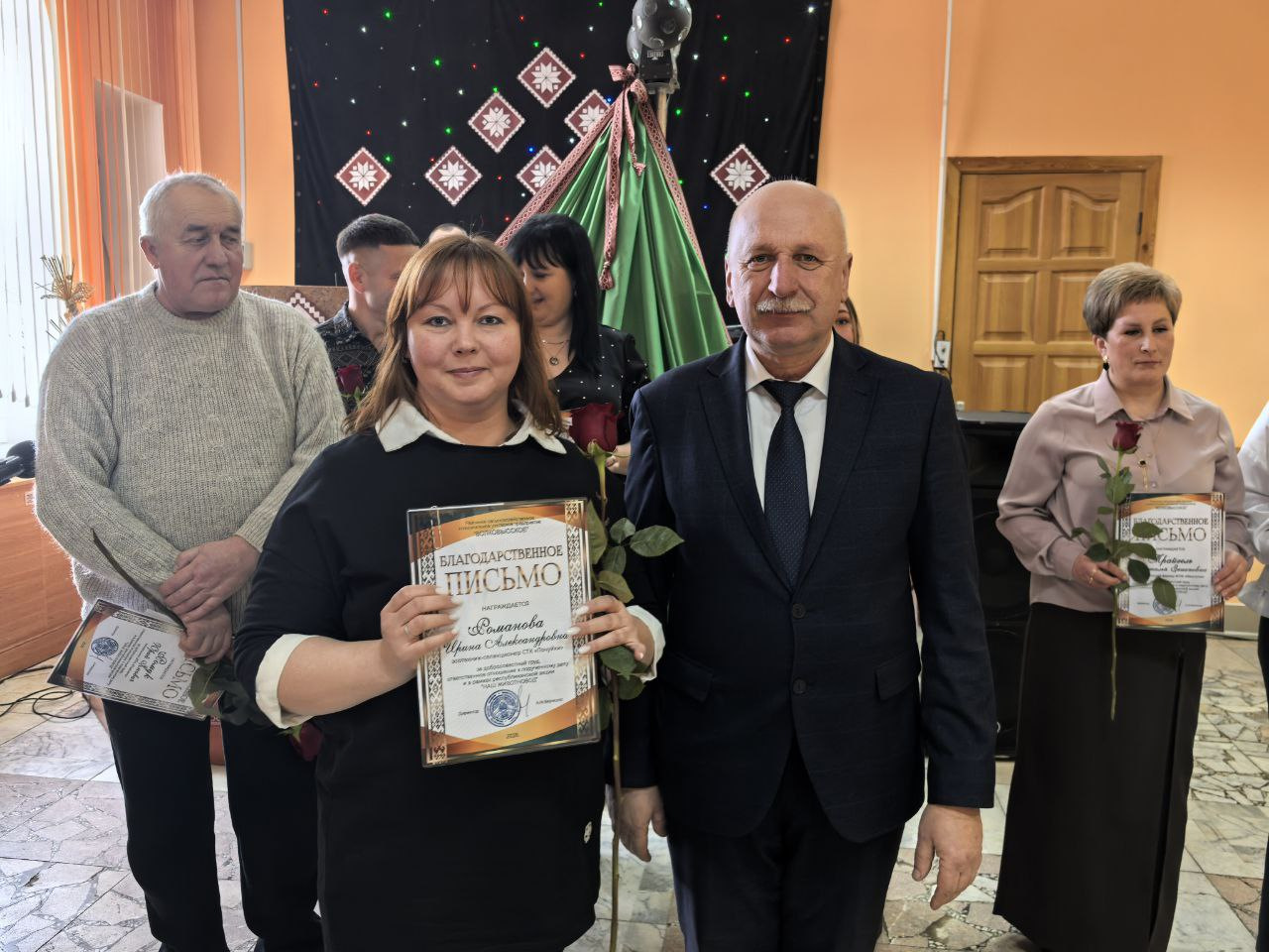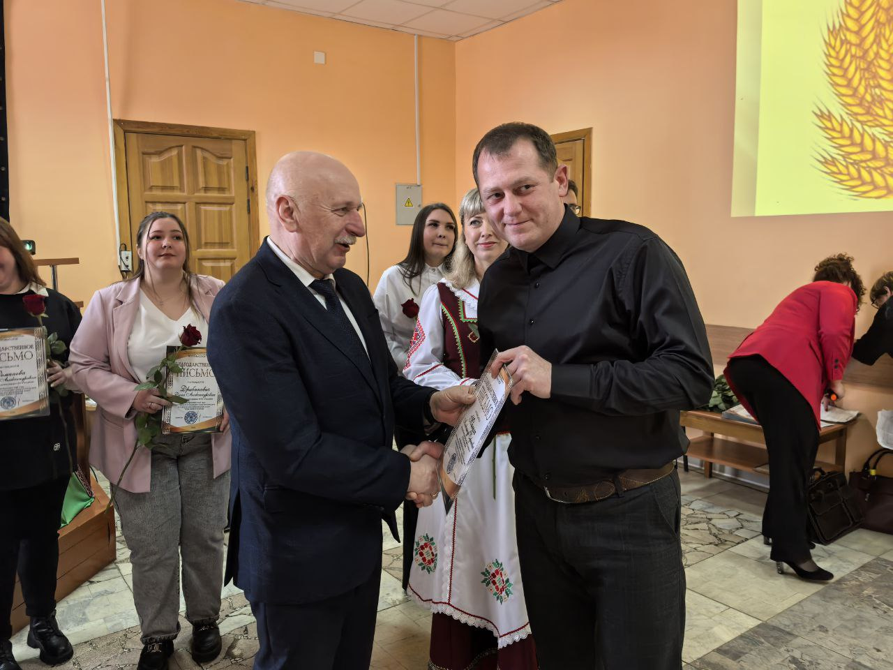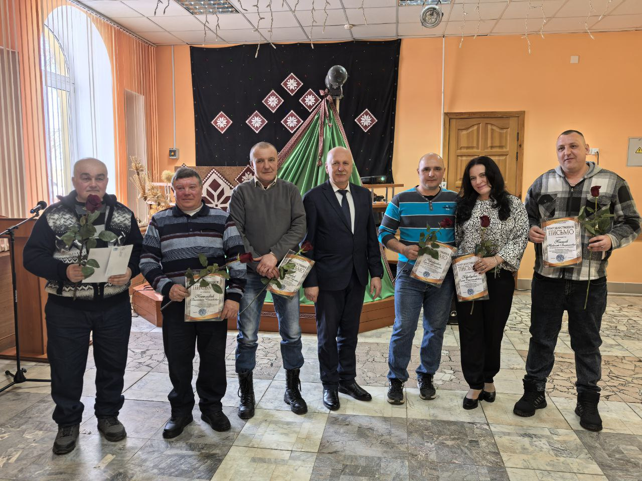Поводом для встречи стала высокая оценка труда специалистов, которые ежедневно обеспечивают стабильность производства. В праздничной обстановке грамотами областной профсоюзной организации работников агропромышленного комплекса были отмечены пять сотрудников предприятия. Среди награждённых — ветеринарный фельдшер МТК «Львовка» Людмила Македон, управляющий фермой «Залучаны» Александр Кузьмицкий, заместитель управляющего фермой «Мештуны» Вероника Гресик, инженер СТК «Почуйки» Дмитрий Бычек, а также зоотехник-селекционер Марина Дулуб.