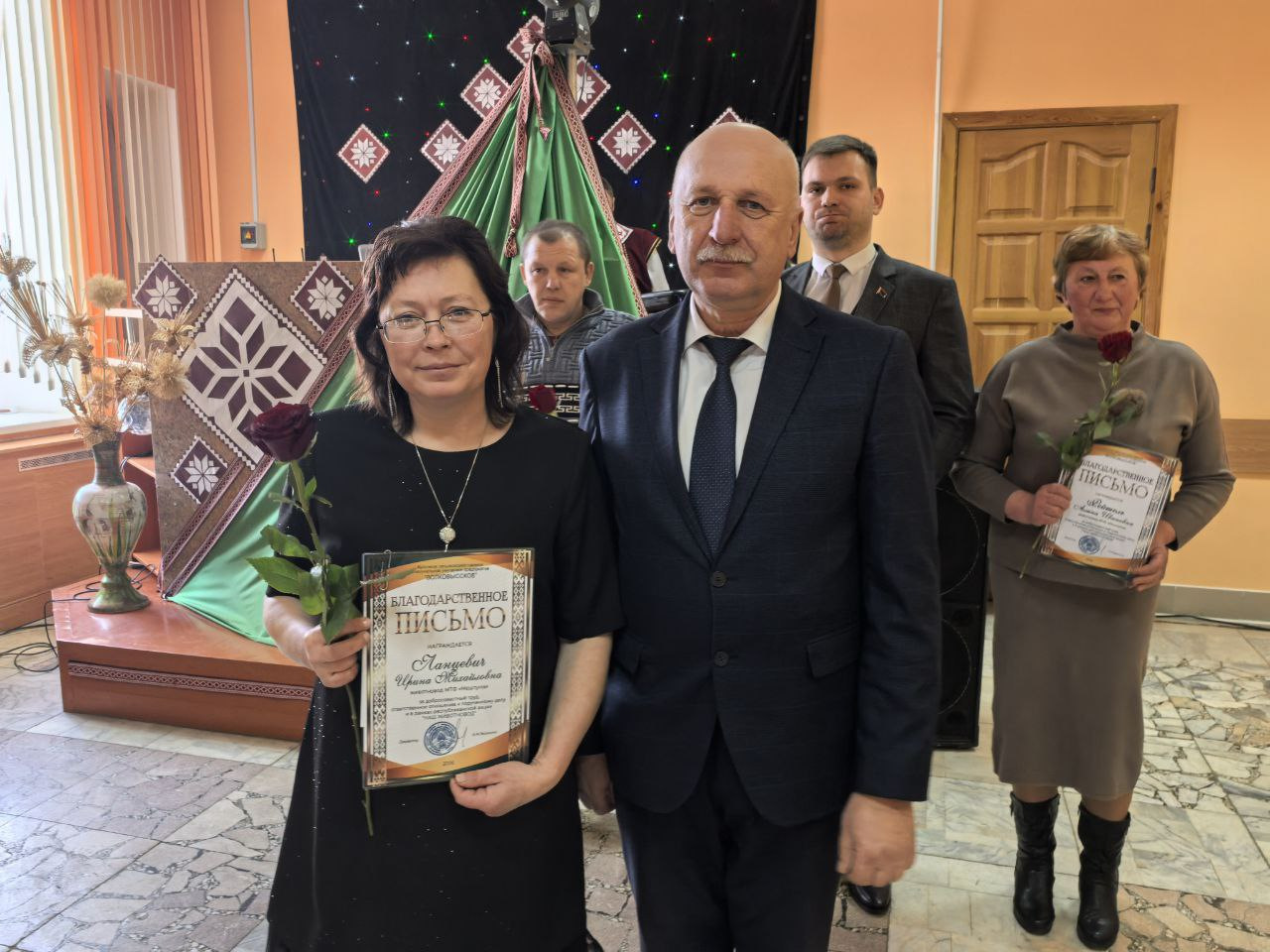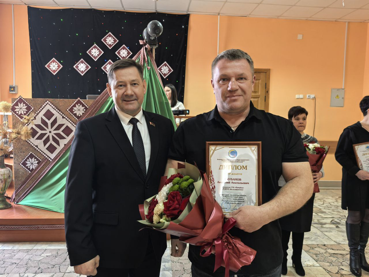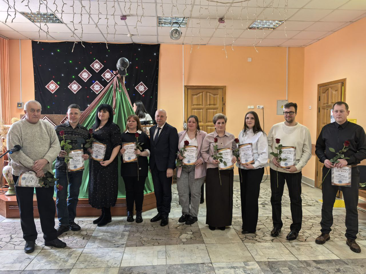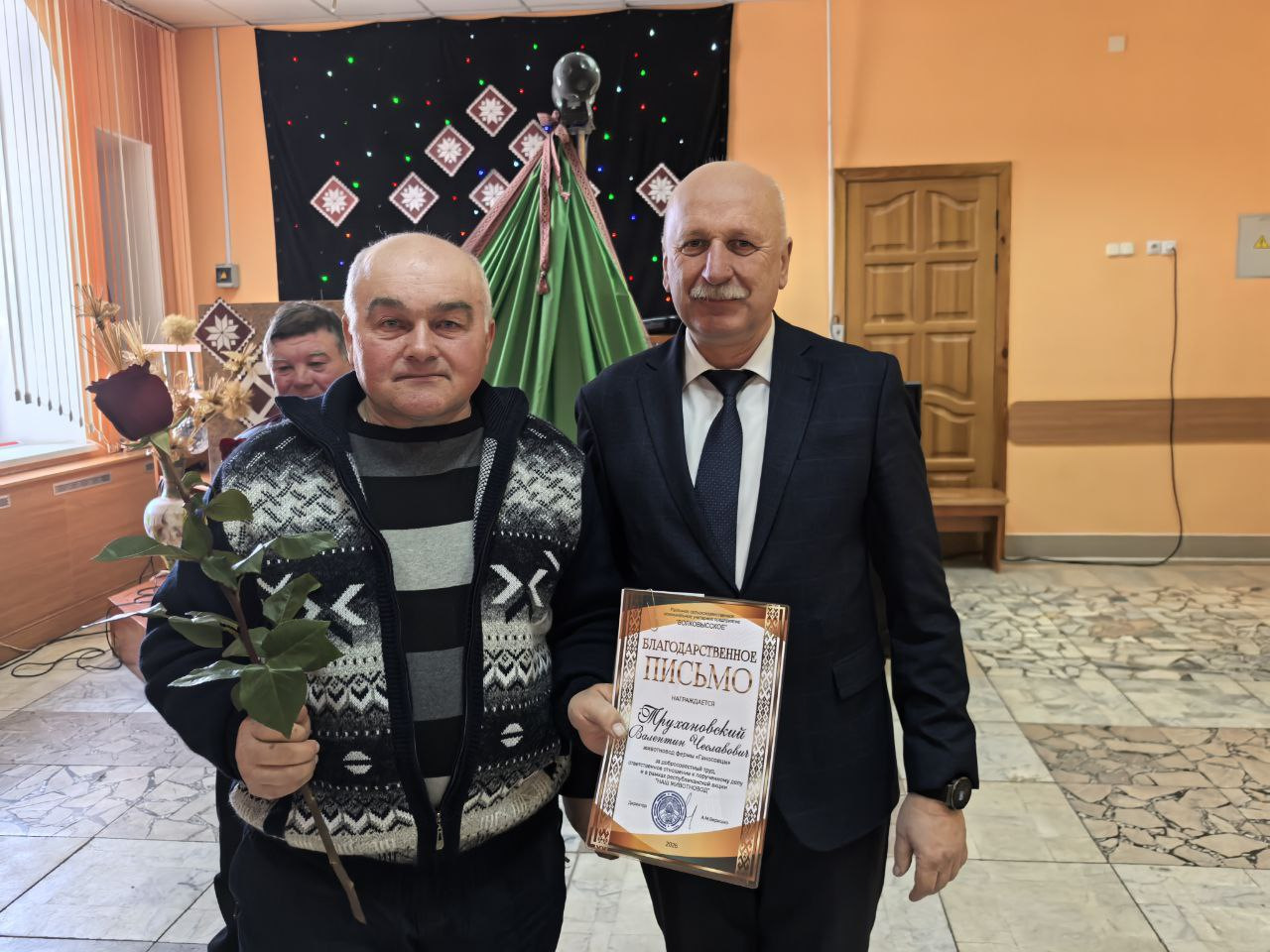 Поводом для встречи стала высокая оценка труда специалистов, которые ежедневно обеспечивают стабильность производства. В праздничной обстановке грамотами областной профсоюзной организации работников агропромышленного комплекса были отмечены пять сотрудников предприятия. Среди награждённых — ветеринарный фельдшер МТК «Львовка» Людмила Македон, управляющий фермой «Залучаны» Александр Кузьмицкий, заместитель управляющего фермой «Мештуны» Вероника Гресик, инженер СТК «Почуйки» Дмитрий Бычек, а также зоотехник-селекционер Марина Дулуб.