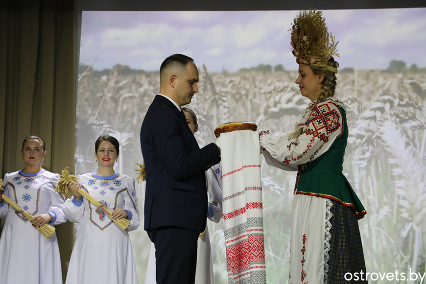 Свята распачалося з харэаграфічнага пралогу, падчас якога ўручылі каравай з мукі новага ўраджаю старшыні Астравецкага райвыканкама Сяргею Мядзвецкасу.