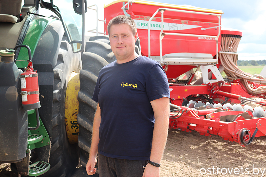На сучасным пасяўным агрэгаце аўстрыйскай вытворчасці Pottinger, які працуе ў счэпцы з «Джон-Дзірам», Сяргей за дзень засявае да 40-45 гектараў.