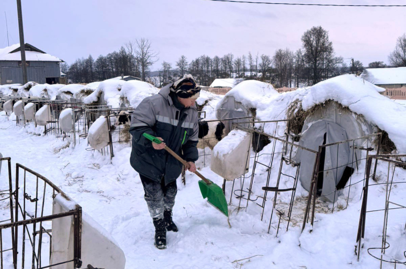 Уборка снега в Волковысском районе продолжается. Коллективы сельхозпредприятий района расчищают свои объекты от сугробов