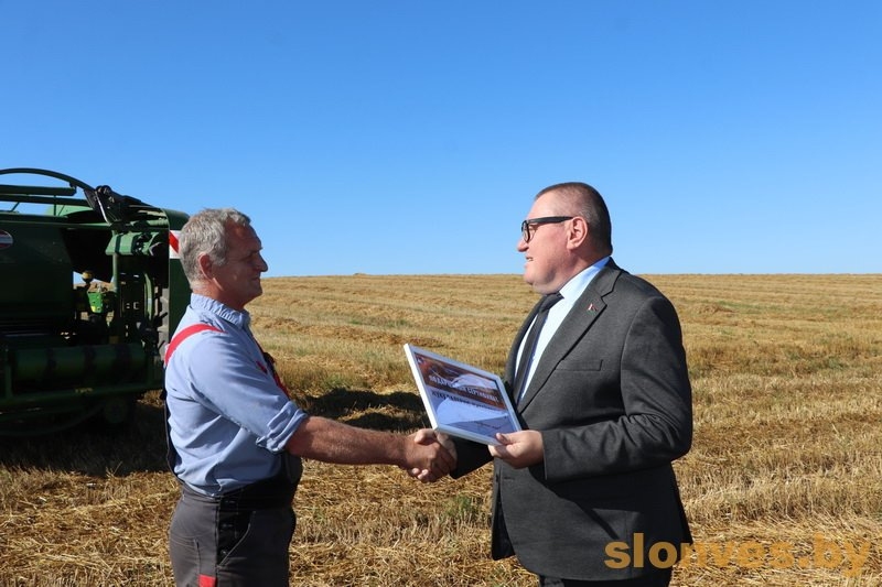 «За Гродненской областной организации Белорусского профсоюза работников строительства и промстройматериалов закреплены хозяйства Слонимского района, и сегодня мы с здесь – с почетной миссией. В этом году решили чествовать не главных героев жатвы, а механизаторов, чей труд не измеряется в тоннах зерна, но при этом чрезвычайно важен. Они самые активные участники сельскохозяйственных работ, причем не только в период жатвы: готовят почву, проводят сев, трудятся на уборке соломы.