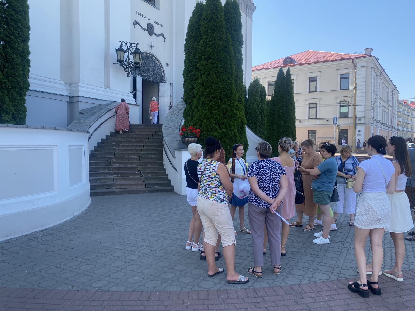 Посетили Фарный костел Франциска Ксаверия - кафедральный собор Гродненского диоцеза выдающийся памятник архитектуры XVI-XVII веков, в прошлом самый богатый костел Речи Посполитой, возведенный для ордена иезуитов, а так же самую большую хоральную синагогу, интерьер которой и сегодня поражает богатой, пышной лепниной. Завершением экскурсии стало посещение Агротуристического комплекса «Гарадзенскi маентак «Каробчыцы». Комплекс выстроен в виде панской усадьбы XIX века и занимает обширную территорию. В Коробчицах побывали в партизанском лагере, погуляли по усадьбе, познакомились с богатством белорусской флоры и фауны, посмотрели охотничий домик, домик рыбака, кузницу, музей природы.