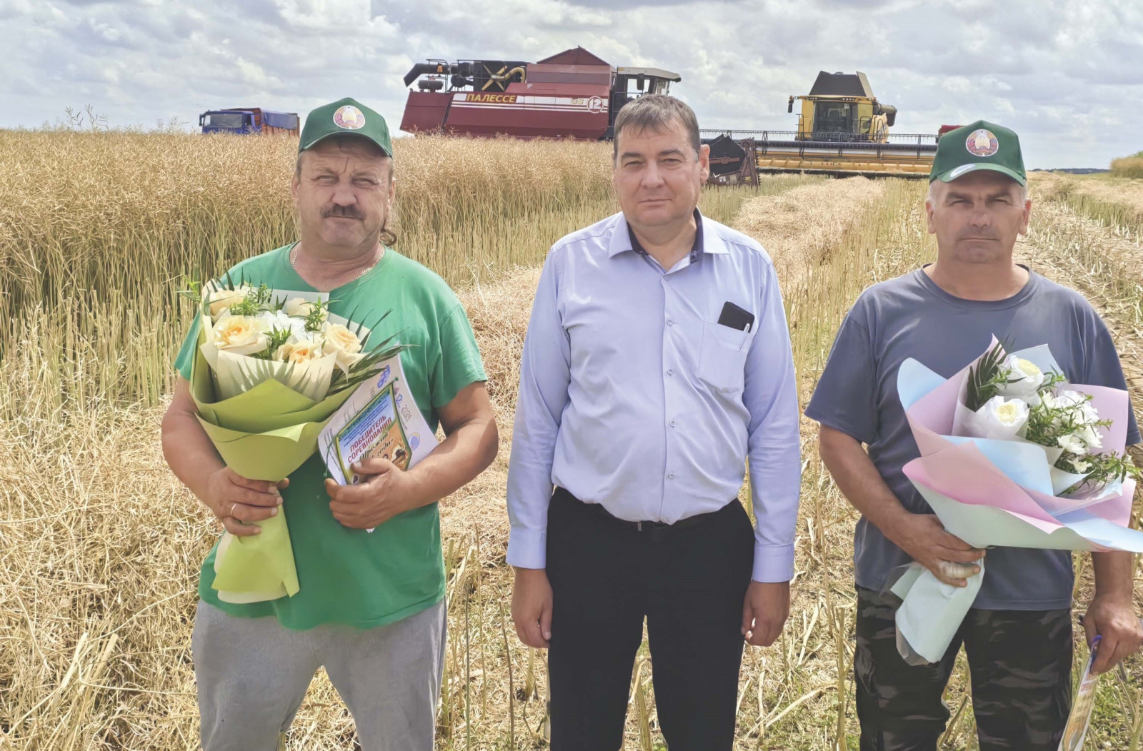 Председатель Гродненского районного комитета белорусского профсоюза работников АПК Александр Аутко вручил диплом и денежное вознаграждение Гродненского областного комитета отраслевого профсоюза Ковраху Вячеславу. Диплом и денежное вознаграждение районного комитета досталось Кривицкому Андрею. Чествование передовиком проходило в поле, на рабочем месте.