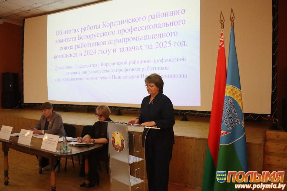 Аб выніках работы Карэліцкага раённага камітэта Беларускага прафесійнага саюза работнікаў аграпрамысловага коплексу ў 2024 годзе і задачах на 2025 год паведаміла старшыня раённай прафсаюзнай арганізацыі АПК Ірына Пянькоўская. Раённы лідар прафсаюза адзначыла: "Наша з вамі галоўная задача — ведаць і разумець, што ў першую чаргу хвалюе людзей, як успрымаюцца тыя ці іншыя новаўвядзенні ў сацыяльна-эканамічнай сферы. Мы павінны актыўна ўдзельнічаць ва ўсіх значных для грамадства падзеях і аказваць рэальны ўплыў на прыняцце жыццёва важных для людзей рашэнняў". Ірына Леанідаўна вяла размову аб выкананні калектыўных дагавораў, партнёрстве і супрацоўніцтве, маніторынгу ў пытаннях выплаты заробку і выкананні правілаў аховы працы, правядзенні працоўных спаборніцтваў і заахвочванні перадавікоў, правядзенні акцыі "Наш жывёлавод", падтрымцы маладых спецыялістаў, турысцка-экскурсійнай дзейнасці, аздараўленні членаў прафсаюза, фізкультурна-аздараўленчай рабоце, удзеле ў выбарчых кампаніях, прафсаюзных акцыях і іншых пытаннях. Справаздачу рэвізійнай камісіі Карэліцкай раённай прафсюзнай арганізацыі Беларускага прафесійнага саюза работнікаў аграпрамысловага комплексу за 2024 год зрабіла яе старшыня Алена Дуровіч. У абмеркаванні дакладаў прынялі ўдзел старшыні пярвічных прафсаюзных арганізацый раёна: Наталля Сіманава (СВК "Свіцязянка-2003"), Валерый Рэўкоўскі (УА "Мірскі дзяржаўны каледж"), Наталля Дасько (ААТ "Карэлічы-Лён"), Аляксандр Івашка (СВК "Жухавічы"). Аб выкананні каштарысу даходаў і расходаў Карэліцкай раённай прафсаюзнай арганізацыі Беларускага прафесійнага саюза работнікаў аграпрамысловага комплексу за 2024 год праінфармавала галоўны бухгалтар Алена Валчэцкая. На пленуме разгледжаны арганізацыйныя пытанні па зменах саставаў раённага камітэта і прэзідыума. Намеснікам старшыні Карэліцкай раённай прафсаюзнай арганізацыі Беларускага прафесійнага саюза работнікаў аграпрамысловага комплексу абрана Таццяна Іванаўна Філіповіч, галоўны эканаміст КСУП "Плезавод Карэлічы".
