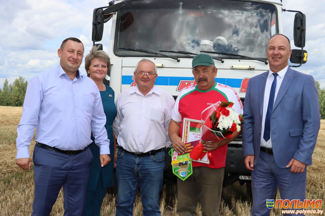 Руководитель района поздравил Олега Климентьевича с первой тысячей, поблагодарил за хорошую работу, пожелал крепкого здоровья и хороших показателей. В СПК «Жуховичи» на 21 июля убрано 515 га — 29% от плана. Аграриями предприятия намолочено 4001 т при урожайности 77,7 ц/га.