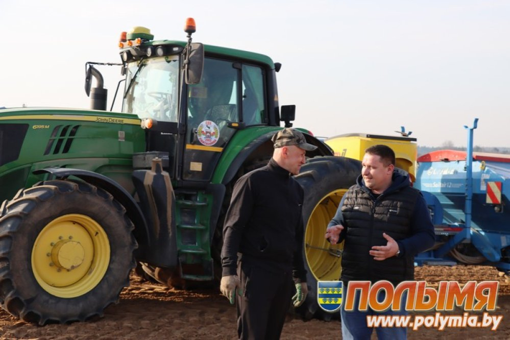 У аграрыяў вясна заўжды пытае строга. Вопытныя земляробы ведаюць: у вясенніх работах нельга марудзіць, неабходна карыстацца кожнай цёплай гадзінай. Аднымі з першых на Карэліччыне прыступілі да сяўбы ранніх яравых зерневых культур працаўнікі СВК “Свіцязянка-2003”. У лічаныя дні надвор’е кардынальна памянялася. Галоўны аграном СВК “Свіцязянка-2003” Дзмітрый Волк расказвае: дзякуючы таму, што ў гаспадарцы да вясны рыхтаваліся ўсю зіму, да старту палявых работ прадпрыемства гатова. Праца на свіцязянскіх палетках ідзе поўным ходам: Андрэй Уласевіч з галоўным аграномам Дзмітрыем Волкам — Вядзём падкормку азімых зерневых і рапсу азотам. Нягледзячы на цёплую зіму і невялікую колькасць снегу культуры перазімавалі добра. Адзіны момант — недастаткова вільгаці, таму ўсе нашы намаганні накіраваны на яе закрыццё, падкормку і пачатак вясновай сяўбы. Механізатар Андрэй Уласевіч сваю справу ведае Да мяжы поля, дзе мы гутарым з Дзмітрыем, пад’язджае трактар “Джон Дзір 6195М”, за рулём якога механізатар Андрэй Уласевіч. Час папоўніць насенне ў бункеры сеялкі. Пакуль паток зярнятак перацякае з кузава “МАЗа”, знаёмімся з механізатарам. Андрэй Мікалаевіч шчыруе на прадпрыемстве ўжо больш за 20 гадоў, сем з іх — на “Джон-Дзіры”: — Тэхніка выдатная. З гэтым трактарам любая работа па плячы. На полі хутка пасеюць ячмень з падсевам люцэрны. Механізатар амаль скончыў работу. Кажа, што на добрым полі можа пасеяць да 80 га за дзень. Звычайна за змену засявае 60 га. — Галоўнае — не спяшацца і рабіць усё правільна, — упэўнены Андрэй Уласевіч. — Нездарма кажуць, “што пасееш, тое і пажнеш”, таму нельга нарабіць памылак на полі, бо не будзе ўраджаю. — Яравыя зерневыя пасеем за 10-12 дзён, — кажа Дзмітрый. — Затым прыступім да сяўбы кукурузы, а за ёй — буракі. Галоўнае, каб надвор’е спрыяла. Свіцязянскім земляробам неабходна пасеяць 80 га пшаніцы, 263 ячменю (з іх 120 — піваварнага), 30 — грэчкі, 100 — гароху, 20 — белага лубіну, 30 — харчовых бабоў. На 400 га вырастуць цукровыя буракі, на 375 пасеюць аднагадовыя травы. Кукуруза на зерне будзе пасеяна на 324 га, сілас — на 700. Вадзіцель Яўгеній Саўко Па дадзеных упраўлення сельскай гаспадаркі і харчавання на 11 сакавіка, да сяўбы прыступілі СВК “Свіцязянка-2003” і “Жухавічы”. Пад яравыя зерневыя і зернебабовыя ў раёне адведзена 7301 га. Пшаніца будзе пасеяна на 705 га, трыцікале — на 240, ячмень — на 1886. Пад яравы авёс адведзена 40 га, пад кукурузу на зерне — 3120, грэчку пасеюць на 150 га. Зернебабовыя культуры плануюць пасеяць на 1160 га, з іх гарох зойме 910 га, лубін — 20, кармавыя бабы — 30, зернебабовыя сумесі — 200, соя — 200. Пад тэхнічныя культуры адведзена 6213 га. Насенне лёну-даўгунцу пакладуць у глебу на 2150 га, цукровых буракоў — 4063. Бульбу пасадзяць на 125 га, гародніну — 131. Кармавыя культуры запланаваны на 13784 га, у тым ліку кукуруза на сілас — 5604, аднагадовыя травы — 1034, шматгадовыя травы — 6716, азімыя зерневыя на зернесянаж — 430. Аграрыямі раёна падкормлена 4970 га (37%) азімых зерневых і 4020 (100%) азімага рапсу. Закрыццё вільгаці праведзена на 1715 га. Працягваецца нарыхтоўка мінеральных угнаненняў. Гаспадаркам раёна пад яравую сяўбу неабходна падрыхтаваць 11736 тон дзеючага рэчыва мінеральных угнаенняў, у тым ліку 5423 т дз.р. азотных, 2151 т дз.р. фосфарных і 4162 т дз.р. калійных. У наяўнасці ў гаспадарках 6990 т дз.р. мінеральных угнаенняў (60%), у тым ліку 3235 т дз.