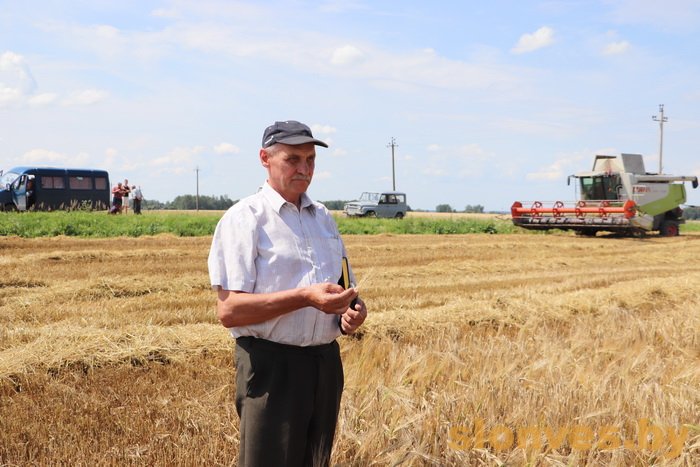 Синоптики прогнозируют, что на этой неделе на Слонимщине прольются обильные дожди. Аграрии понимают, что зерноуборочную кампанию, вероятно, придется ставить на паузу. А потому используют каждый погожий час, чтобы собрать спелое зерно. На поле озимого ячменя в 146 га в урочище Дубовое КСУП «Имени Суворова» в понедельник работали сразу три комбайна. Уже по объемным валкам соломы и полному колосу можно предположить, что ячмень в этом году уродил. Наблюдения подтвердил главный агроном хозяйства Петр Анатольевич Лагутик.