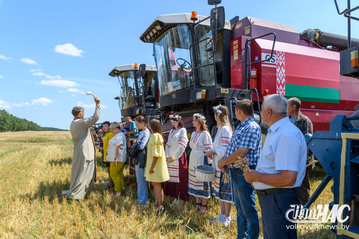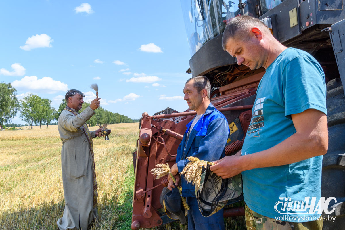 Традиционно перед любым значимым событием принято просить у Бога благословления на удачное его завершение. Собравшиеся так и сделали вместе с православным и католическим священнослужителями. После совместной молитвы отец Сергий и ксендз Геннадий освятили уборочную технику и людей, благословив на плодотворный труд на хлебной ниве.