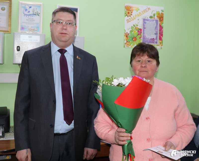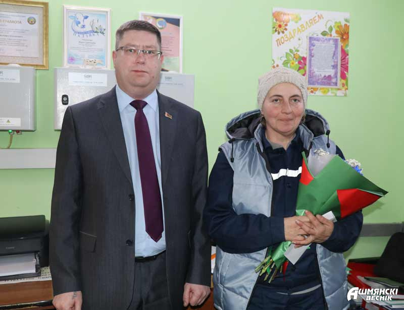 На комплекс приехали первый заместитель председателя Ошмянского райисполкома Андрей Янюк, председатель райкома профсоюза работников АПК Раиса Турлай, руководитель СУП «АгроМолРай» Эдуард Артемов. Поздравления принимали телятницы МТК «Войшнаришки» Наталья Бернатович и Инга Тедорадзе-Бернатович и телятницы МТФ «Гравжишки» Елена Кузьма и Анна Гируть.