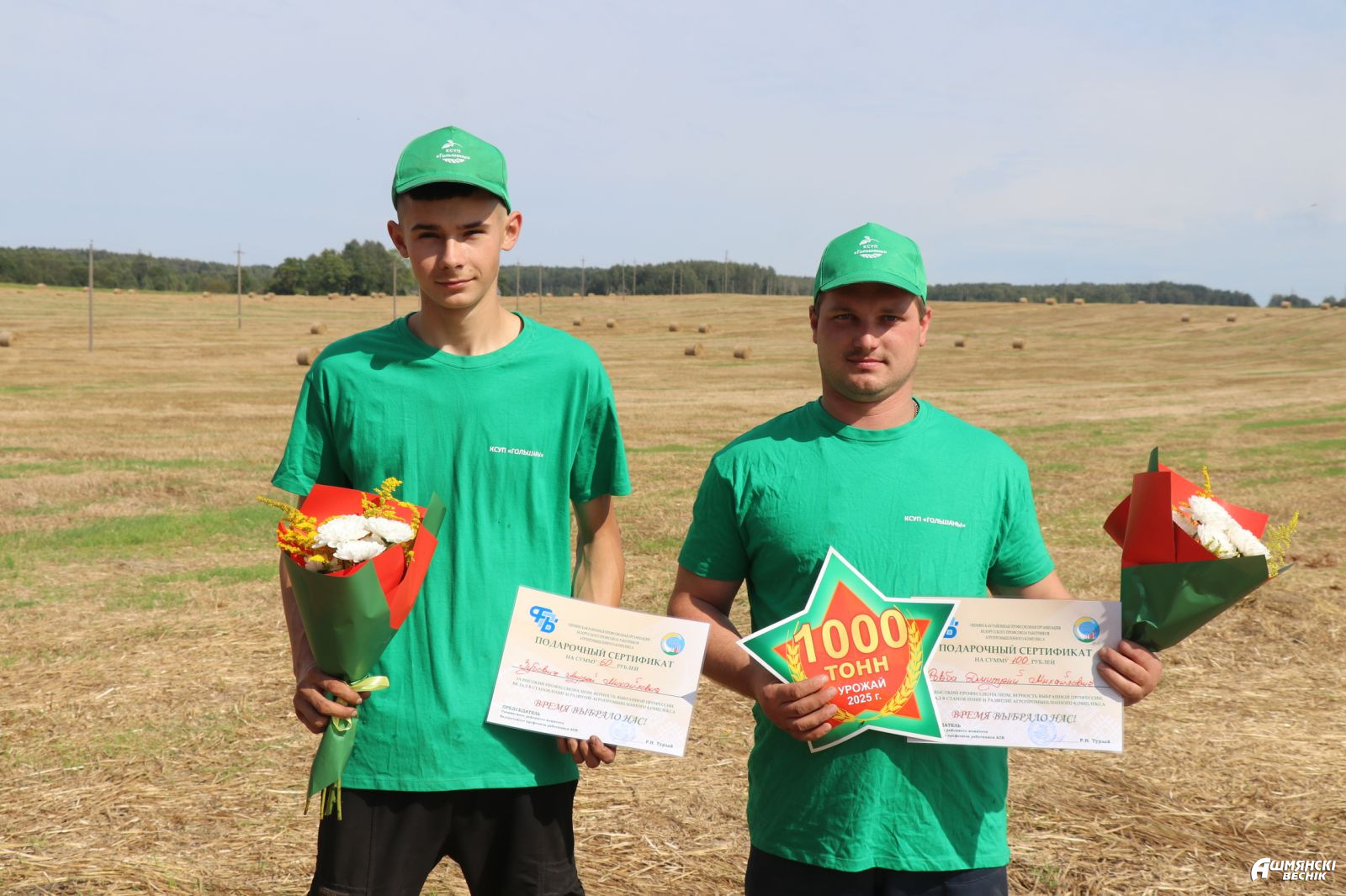 Две тысячи тонн зерна намолотил комбайнерский экипаж Дмитрия Ровбы и Павла Зубовича из КСУП «Гольшаны». Больше двух тысяч тонн зерна перевез водитель КСУП «Крейванцы» Виталий Блажевич.