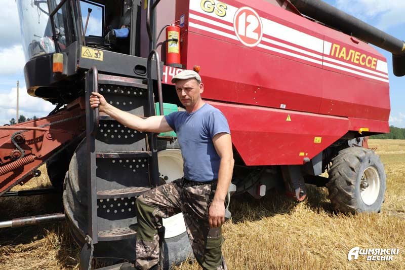 Именно поэтому, не теряя ни одной погожей минуты, хлеборобы старательно трудятся. Около деревни Дукели мы застали три комбайна, которые уверенно ведут по полю Руслан Опухович, Александр Будько и Денис Залесский. Все они – не первый год в хозяйстве, дело свое хорошо знают. Да и мощная техника аграриям в помощь. К слову, Руслан Опухович в эти дни обкатывает новенький комбайн. На сжатой ниве ведется прессование соломы, которая тут же свозится на комплекс «Васевцы». Наполненные бункеры зерна нового урожая отправляются на зерносушильный комплекс «Каменный Лог».