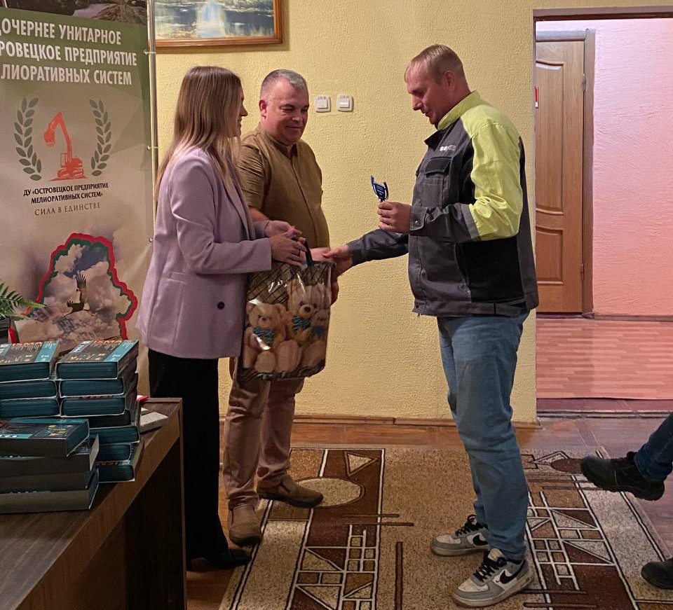 Первичная профсоюзная организация Островецкого предприятия мелиоративных систем поздравила с Днем отца новоиспеченных многодетных пап, работающих на предприятии.