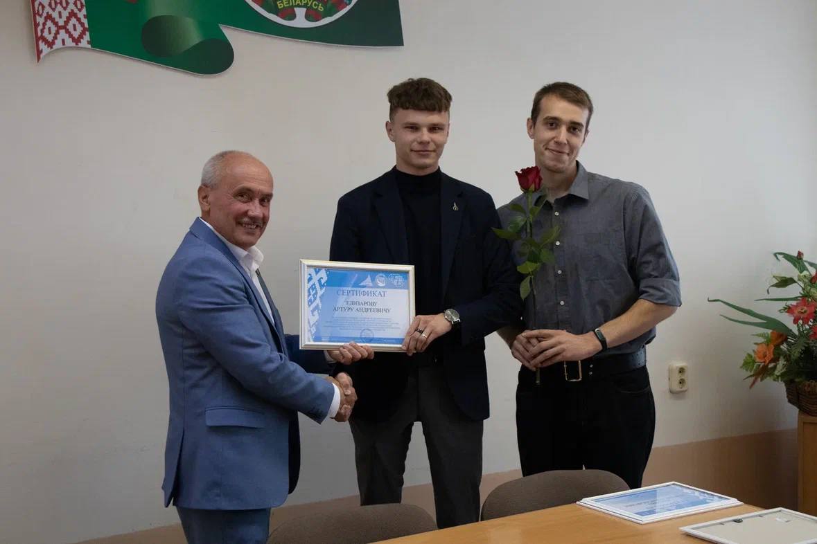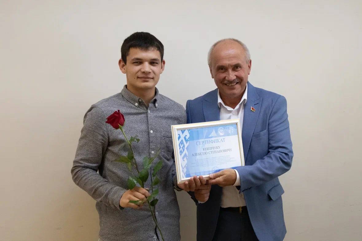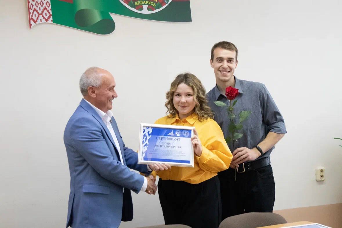 В завершение встречи председатель обкома профсоюза работников АПК вручил сертификаты на получение именной стипендии за активную работу, направленную на укрепление авторитета профсоюза среди студенческой молодёжи, защиту прав и интересов студентов членам отраслевого профсоюза: Елизавете Решетнёвой, Павлу Каскевичу, Алексею Юзепчику, Артуру Елизарову, Божене Букейко, Динаре Нагиевой, Яне Слуцкой и Наталье Мазан.