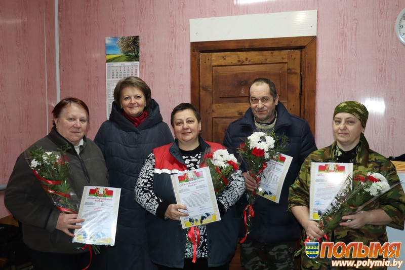 Благодарственное письмо Кореличского райкома профсоюза работников АПК вручили бригадиру производственной бригады в животноводстве МТФ «Лядки» Анне Клавсуть, технику по племенному делу этой фермы Алле Клавсуть, оператору машинного доения фермы «Лядки» Елене Москалик, слесарю по ремонту и обслуживанию доильного оборудования МТФ «Лядки» Петру Кучуре, слесарю по ремонту и обслуживанию доильного оборудования МТФ «Погорелка» Александру Самцу, оператору машинного доения МТФ «Быковичи» Татьяне Вареник, животноводу этой фермы Вадиму Жданько, технику по племенному делу МТФ «Малая Обрина» Татьяне Гинак.