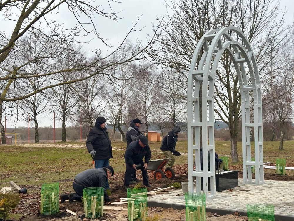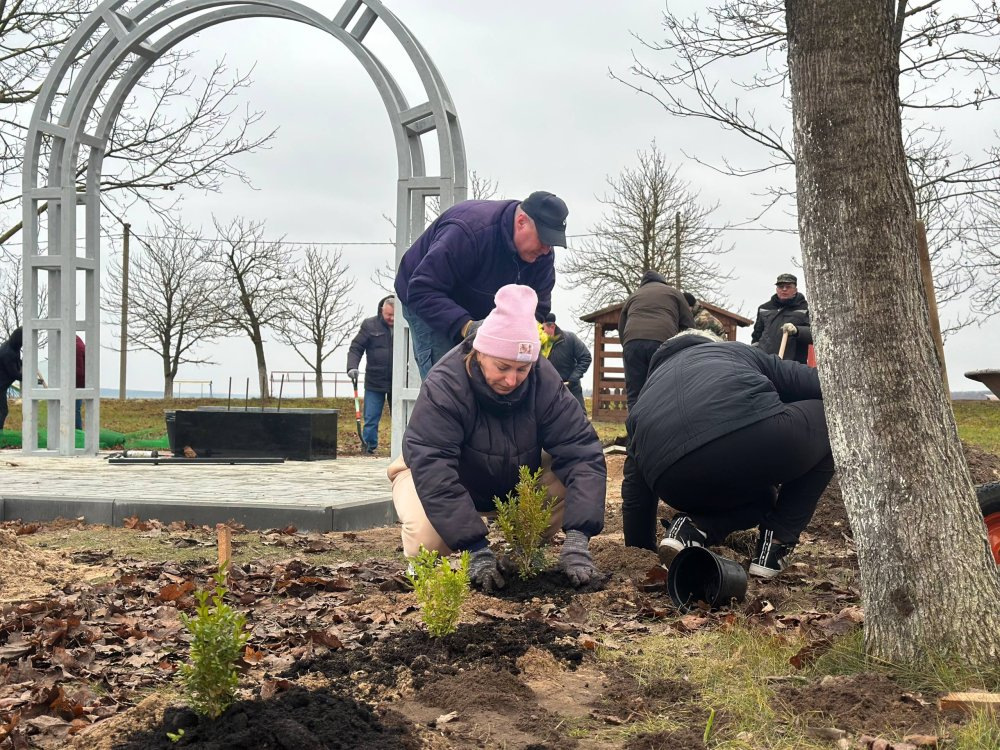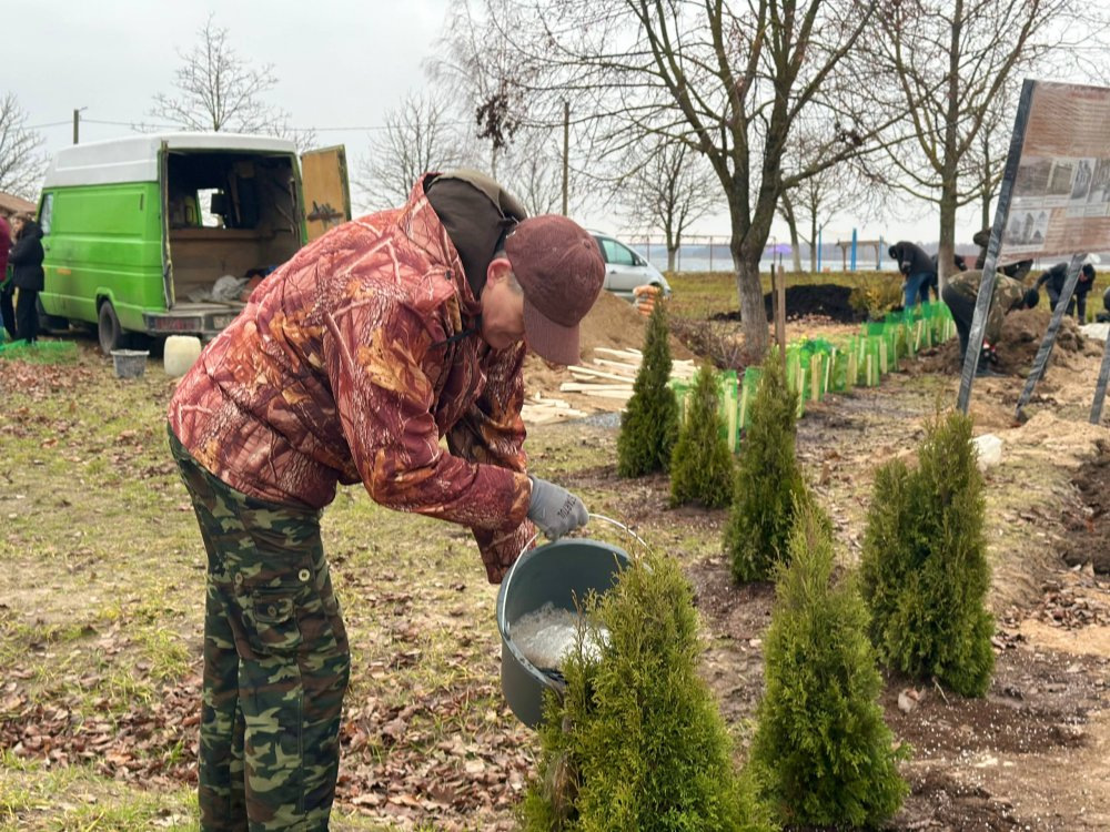 Обустройство памятного знака «Зельвенский прорыв» возле водохранилища Зельвянское продолжается. Как мы писали ранее, первые работы здесь были проведены в октябре во время республиканского субботника. Тогда сотрудниками райисполкома была подготовлена площадка для знакового места. В течение прошлой недели на площадке уложена плитка, установлена арка, подготовлено место для посадки зеленых насаждений. Сегодня территория городского поселка у водохранилища вдоль дороги Р-99 вновь оживилась благодаря активной работе представителей райисполкома, депутатского корпуса, молодежи, местных жителей и делегатов Всебелорусского народного собрания. Всех объединила общая цель – сохранить память о героическом прошлом нашего края. О прошлом, которое не должно уйти в забвение, о тех ожесточенных кровопролитных боях Красной Армии с превосходящими силами вермахта в конце июня 1941 года на стратегическом шоссе Белосток-Волковыск-Зельва-Слоним. Акция по обустройству памятного знака и прилегающей к нему территории прошла активно и массово. Участники инициативы разравнивали землю, по периметру площадки и вдоль аллеи высаживали туи и самшиты, вокруг стволов насаждений выставляли защиту из сеток. В ближайшие дни вдоль аллеи к памятному знаку будут установлены информационные блоки с фотоматериалами о страшных событиях начала Великой Отечественной войны на Зельвенщине. Напомним, что идея увековечивания памяти героев, принявших на себя удар начала Великой Отечественной войны в Зельве, реализуется благодаря победе заявленного зельвенцами проекта в конкурсе гражданских инициатив. Постоянную поддержку и содействие в этом оказывают районный Совет депутатов, Гродненская областная ассоциация местных Советов депутатов, а также неравнодушные к историческому прошлому жители горпоселка. Автором концепции выступила главный специалист отдела идеологической работы и по делам молодежи Зельвенского райисполкома Мария Шмыгина. Проект станет ярким примером взаимодействия всех слоев населения, продемонстрировав значимость общественного участия в сохранении культурного наследия и исторической памяти нашей страны. Ведь установка памятного знака и благоустроенная зона будут служить местом патриотического воспитания подрастающего поколения, напоминания о важности мирной жизни и единстве народа. Сергей Баган, председатель Зельвенского районного совета ветеранов, делегат Всебелорусского народного собрания: – Одним из приоритетов воспитания, особенно молодежи, должно оставаться сохранение исторической памяти. Мне, как человеку-историку по профессии, очень импонирует, что зельвенцы считают это делом чести и гарантии мира в будущем. С этой целью на Зельвенщине реализуется ряд патриотических инициатив: в музейной комнате истории Деречина открыта экспозиция, посвященная геноциду белорусского народа, в деревне Сынковичи заложена Аллея памяти. На месте легендарного сражения времен Великой Отечественной войны вдоль дороги Р-99 возле водохранилища Зельвянское устанавливается памятный знак с фактическими материалами и фотографиями. Эти объекты станут знаковыми местами для всех, кому небезразлична история своей малой родины и страны, а также события, произошедшие более 80 лет назад. Ради мира на земле! Подробнее читайте в печатной версии га