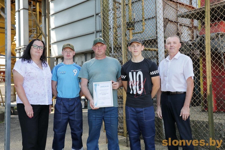 Диплом Сергею Викторовичу вручили председатель районного комитета профсоюза работников АПК Александр Зинченко, председатель районного объединения профсоюзов Ольга Радевич и председатель «первички» ОАО «Сеньковщина» Николай Голенда. Также профсоюзные лидеры порадовали и бригаду операторов зерносушильного комплекса ОАО «Сеньковщина». Жан Смокат, Егор Кадовб и Александр Якимец первыми в районе доработали две тысячи тонн нового урожая с учетом рапса.