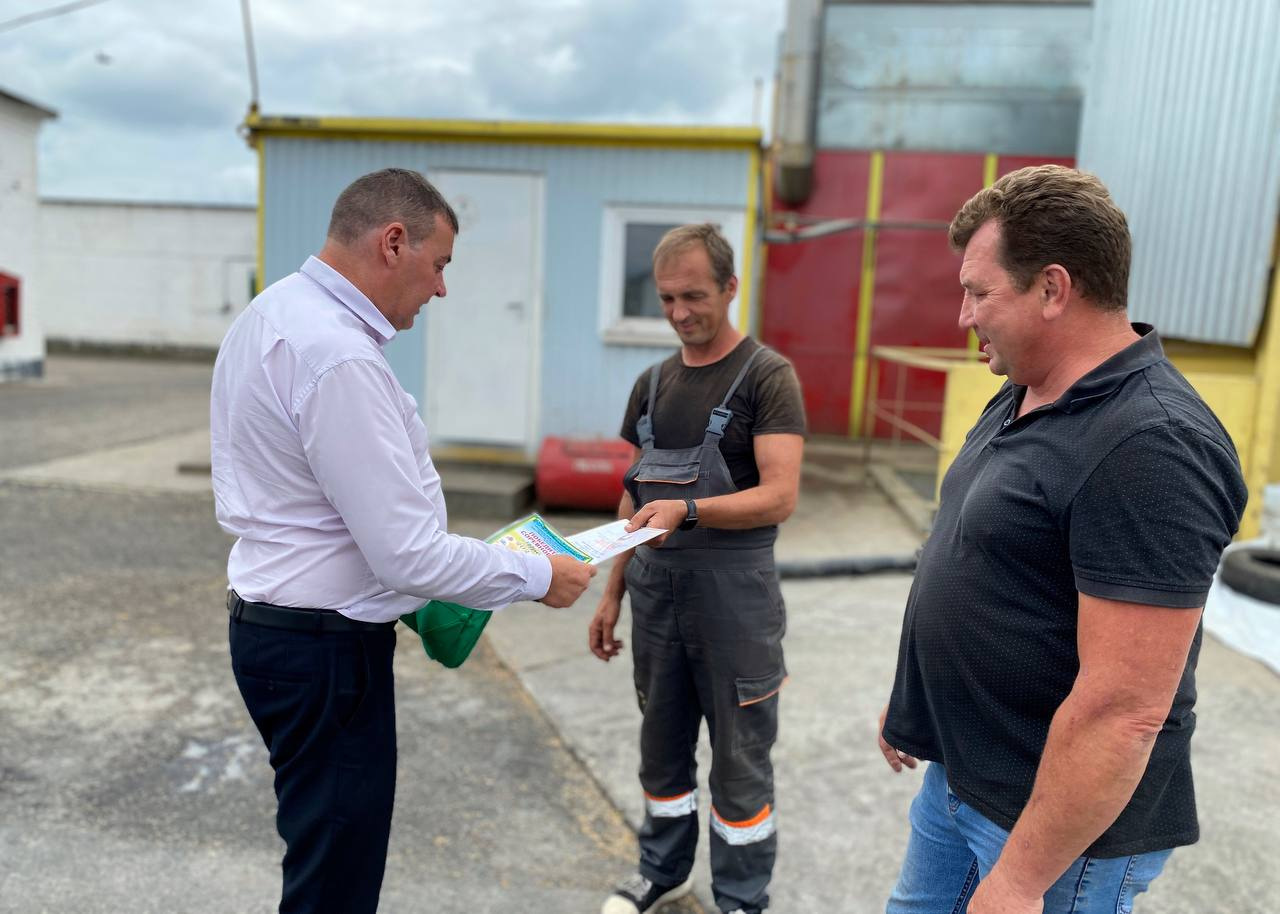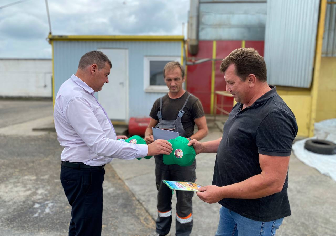 Председатель Гродненской районной профсоюзной организации работников АПК Александр Викторович Аутко наградил дипломом и денежным вознаграждением лучших операторов зерноочистительно-сушильного комплекса «КЗСВ-30»: