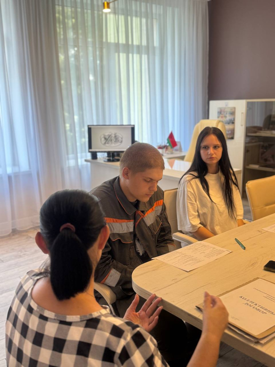 Председатель первичной профсоюзной организации СПК Галина Ивановна Фиалко провела с ребятами ознакомительную беседу, касающиеся взаимоотношений профсоюза с работниками, действия норм коллективного договора, а также правового статуса профсоюзных работников, проинформировала о льготах, материальном стимулировании, предусмотренных молодым работникам.