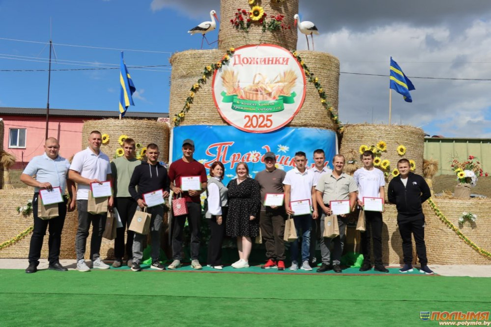 После на сцену пригласили водителей автомобилей, перевезших наибольшее количество зерна от комбайнов. Это Болеслав Чешейко, обладатель первого места, Валерий Якимович, обладатель второго места и Евгений Савко, обладатель третьего места. Были награждены остальные трактористы-машинисты, занятые на уборке зерна: Игорь Уласевич, Иван Мелешко, Евгений Кленовский, Виктор Муравский, Михаил Гирза, Андрей Гринько, Денис Янковский, Юрий Захарчук и Николай Мащенский.