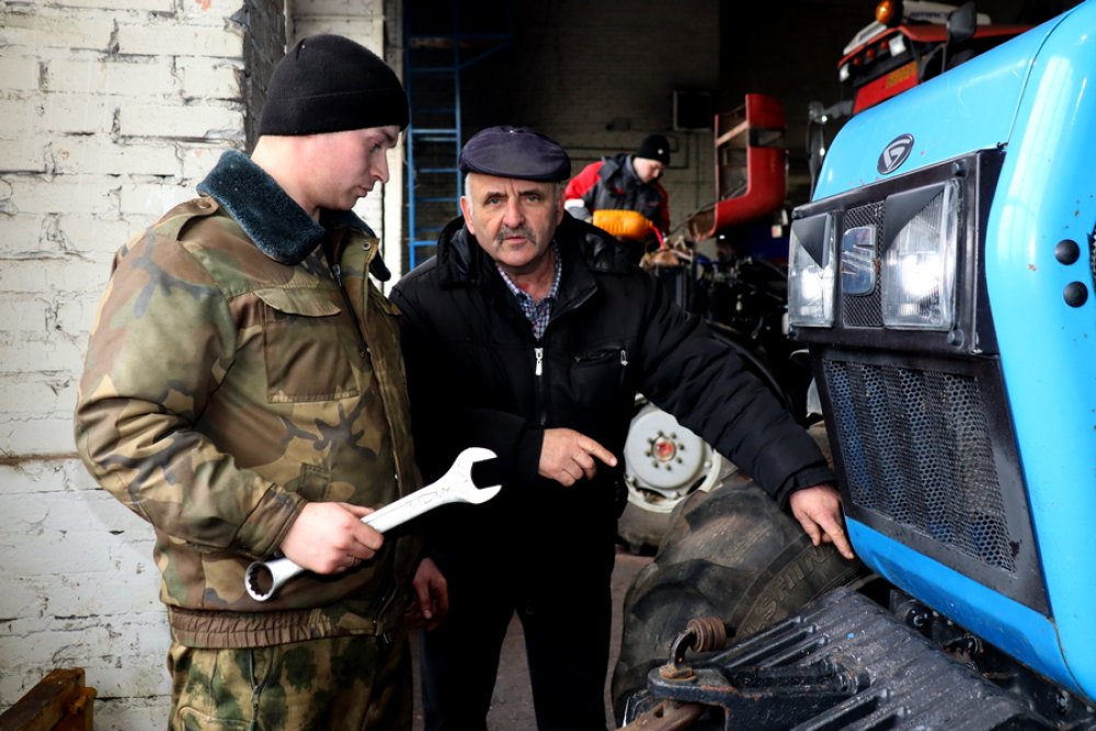 Обходятся собственными силами. Запчастей закуплено в достатке, поэтому ремонтные работы идут согласно графику. К тому же в комфортных условиях, что немаловажно. А своевременное проведение технического обслуживания и полная подготовка сельхозмашин к предстоящим сезонам позволит не сбавлять темпы во время деятельности на полях, минимизирует простои по причине неожиданных поломок. Ремонт идет поэтапно, все обязанности распределены. Сейчас вот в мастерской заняты подготовкой к техосмотру своих МТЗ-1221 механизаторы Валерий Жук и Дмитрий Ковчун. С инструментами в руках устраняет неполадки двигателя МТЗ-1223 Дмитрий Голуб. Водитель Андрей Кучинский чинит рулевой насос, а Геннадий Харитончик меняет колеса.