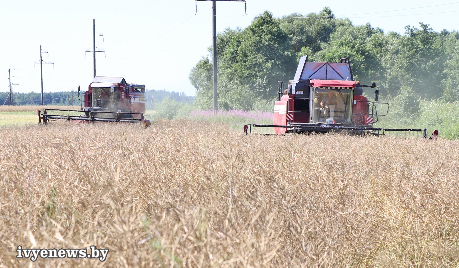 В планах у Ивьевского района убрать озимый рапс с 2437 га, 1437 га из которых принадлежит СУП "Лаздуны Агро", а это 58% от общего числа. Благо и техника, и квалифицированные специалисты имеются. Дожди свое отшумели, где-то это даже полезно для почвы и будущих урожаев, но отставать от республиканских цифр не хочется, а значит, надо собрать волю в кулак и выполнить поставленную задачу. На участке возле Хованщины около 60 гектаров засеяно рапсом – убрать все это планируют за один день. Техника и люди в предвкушении жатвы, опытный агроном участка Александр Зеленевич контролирует процесс.