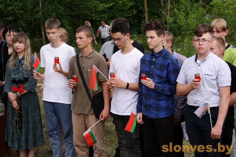 Участники патриотического автопробега “Память сердца” и учащиеся Жировичского аграрно-технического колледжа возложили к памятнику цветы и зажгли лампадки.