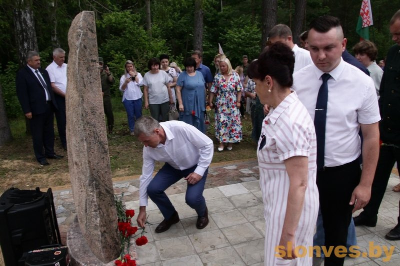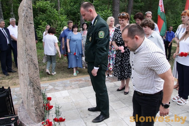 Почетное право открыть памятный знак в урочище Басины было предоставлено председателю Слонимского райисполкома Геннадию Хомичу, депутату Палаты представителей Национального собрания Республики Беларусь Валентину Семеняко и председателю Слонимского районного Совета депутатов Олегу Таргонскому.