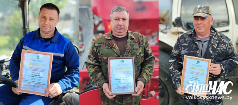 Их вручил председатель райкома профсоюза Валентин Заяц. Максимальной выработки в доведенные сроки по различным видам работ добились: Геннадий Романчук и Дмитрий Емельянчик (КСУП «Заря и К»), Олег Коленко (КСУП «Матвеевцы»), Дмитрий Андрейчик и Мечислав Трайгель (РСКУП «Волковысское»), Александр Куратчик (КСУП «Племзавод «Россь»), Андрей Манцевич (КСУП «Неверовичи»).